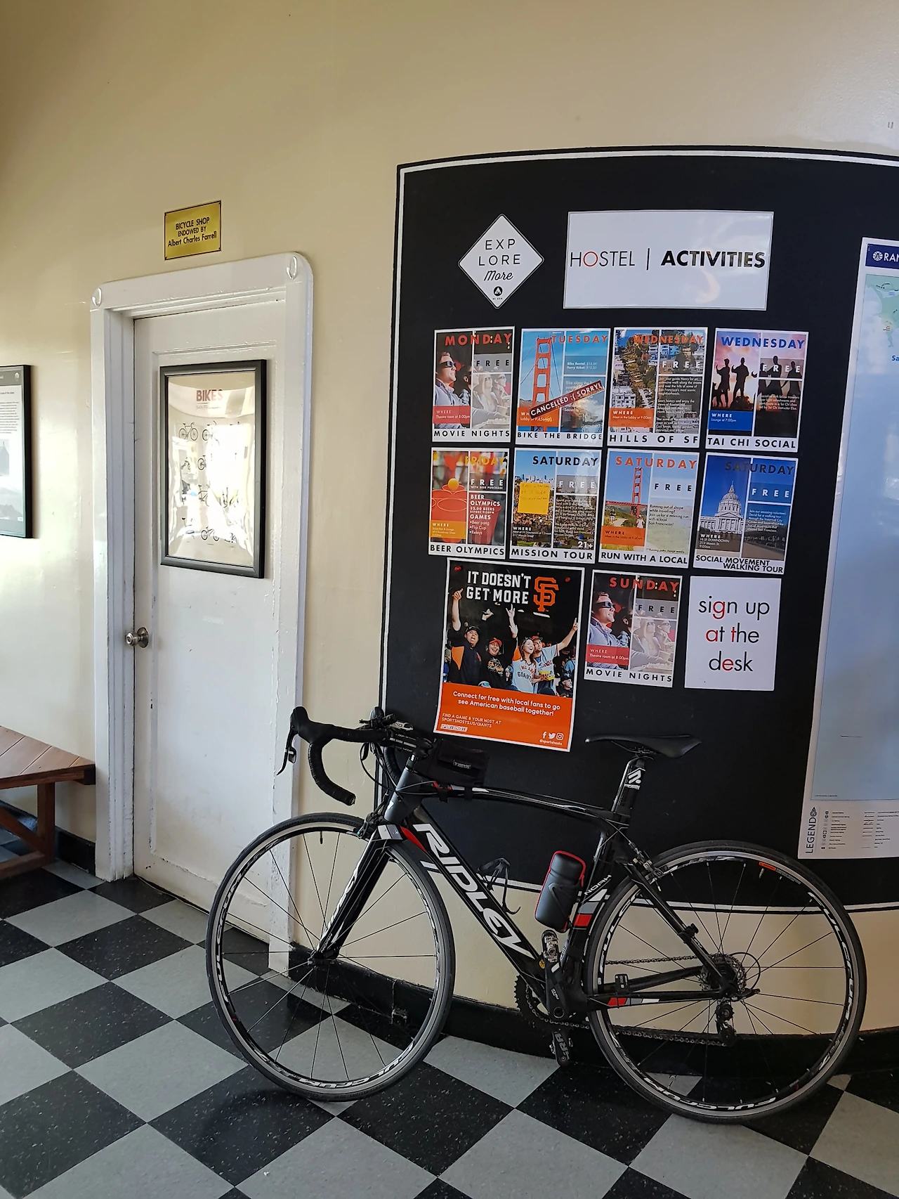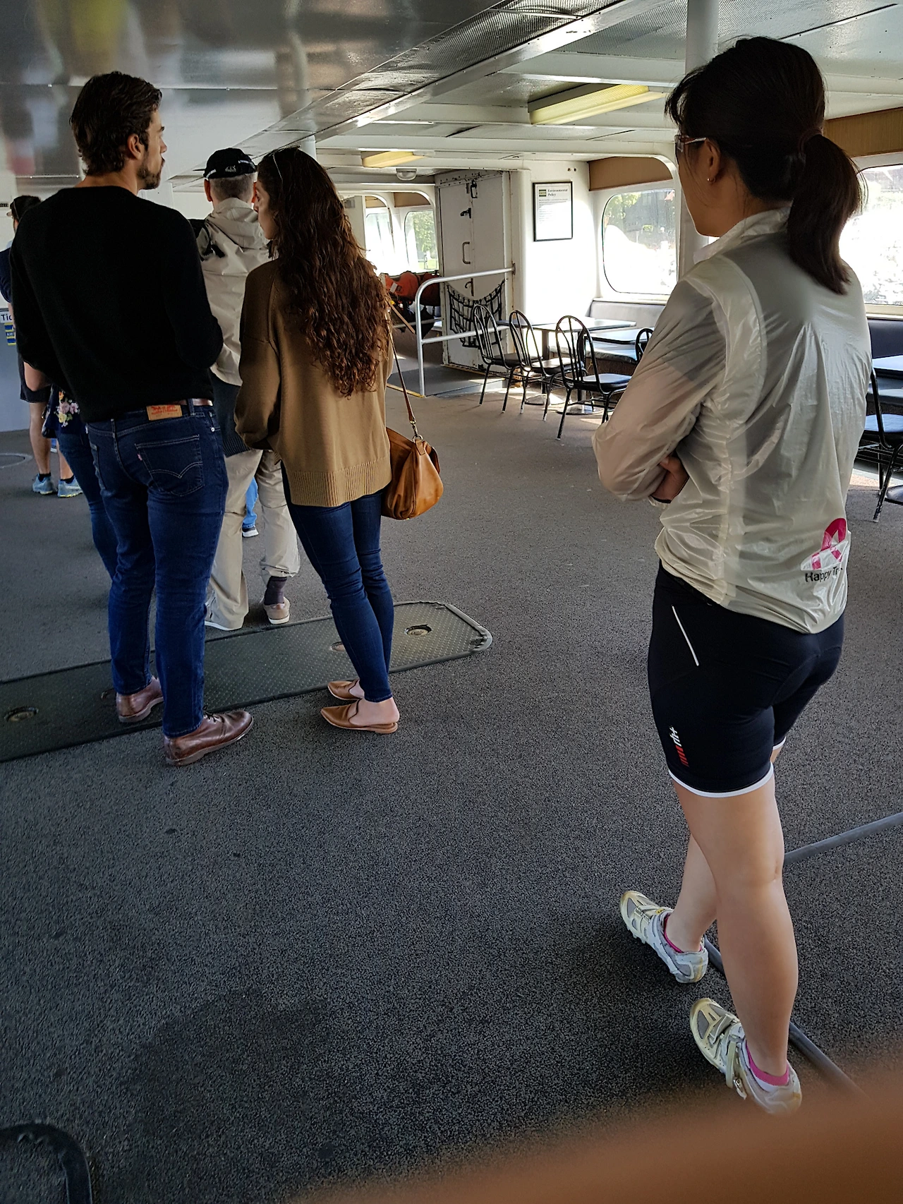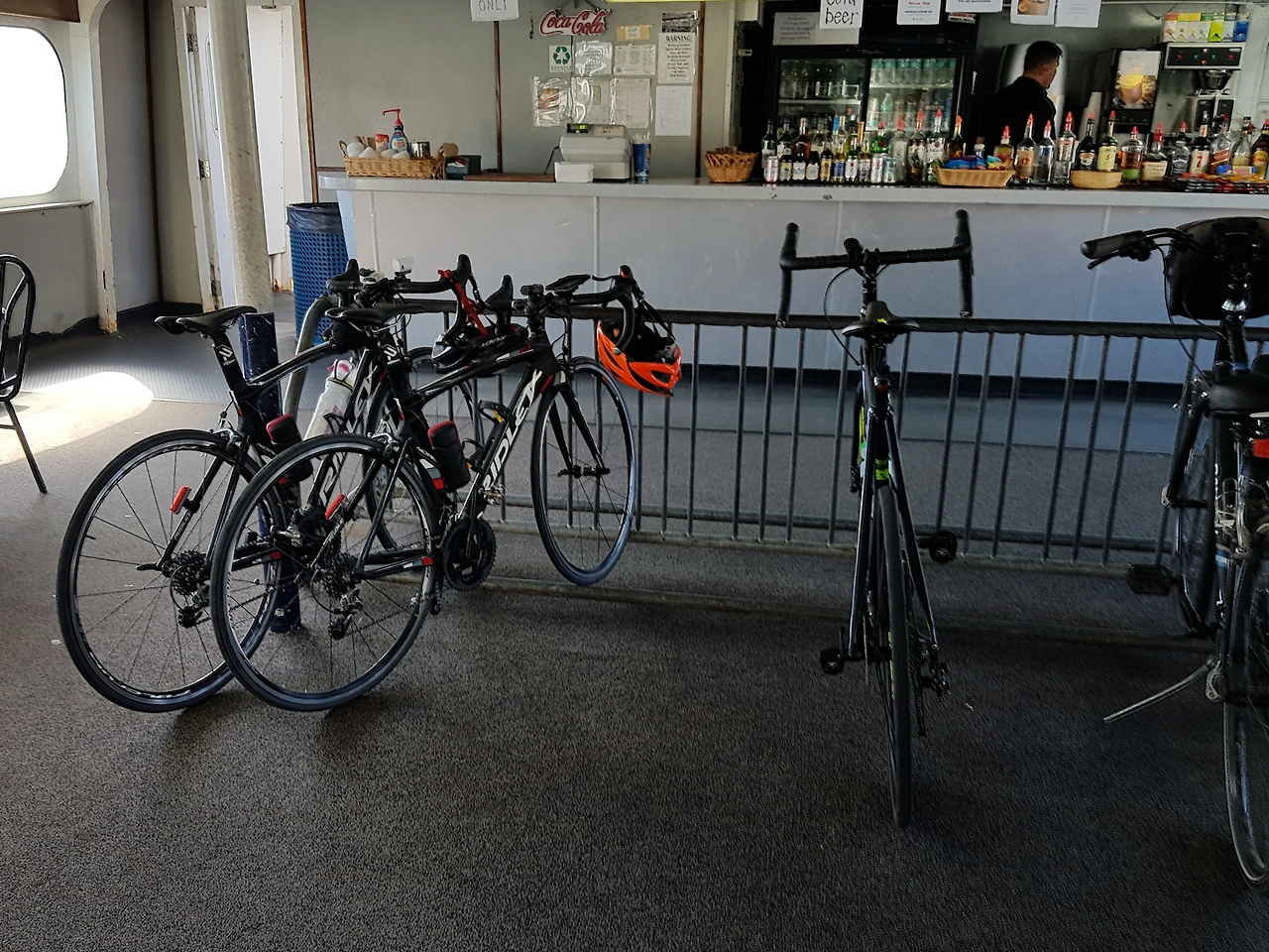 일단 배에 타고 자전거를 거치한다. 1층 한복판에 널찍한 자전거 거치대가 있다.