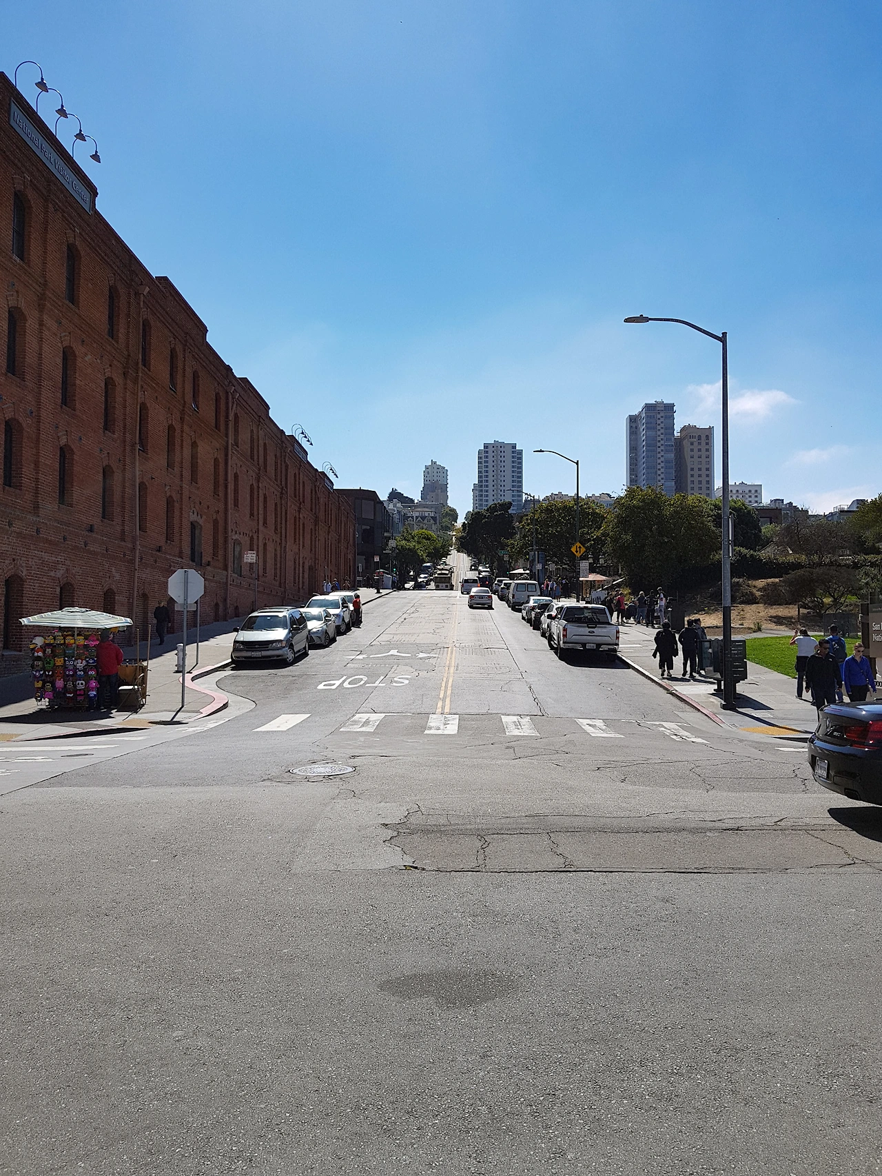 케이블카가 올라간 언덕을 올라가야 롬바드 스트리트로 갈 수 있는데 걸어 올라가기에도 상당히 가파르다.