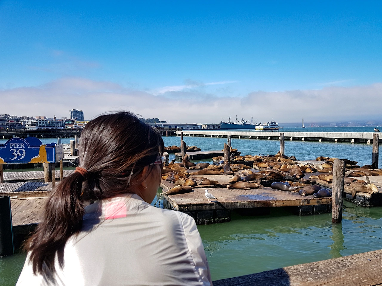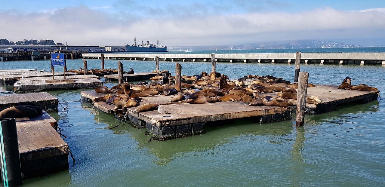 이 바다사자들은 1989년 지진 후부터 여기에 살기 시작했다고 한다. 초기에는 이 부두를 쓰던 사람들과의 마찰도 있었지만 지금은 여기를 완전히 점령하고 살고 있다.