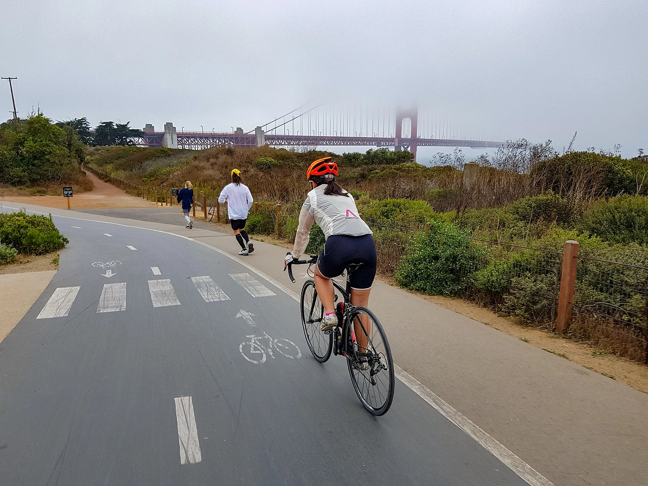 크리시필드라는 공원 같은 곳을 따라 자전거길이 잘 나있다. 금문교가 점점 가까워지는데 낮게 깔린 안개에 주탑 머리가 보이질 않는다.