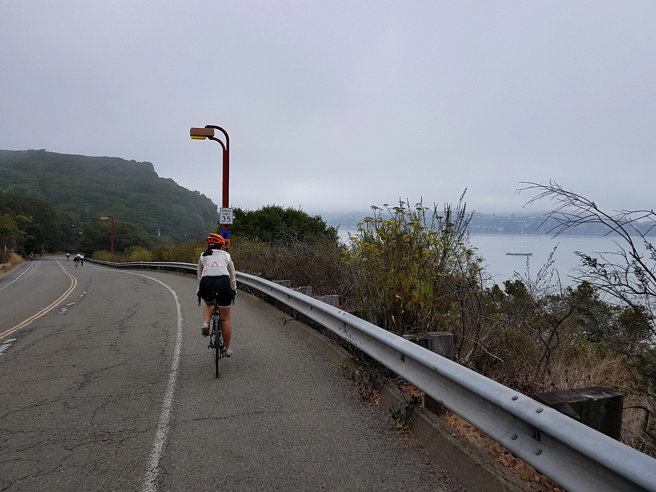 길을 따라서 반대편으로 넘어왔다. 레드우드 하이웨이를 관통하는 길이 없어 해안 쪽으로 조금 돌면 자전거길 이정표가 있다. 직진하면 큰 길을 따라 티뷰론으로 바로 가고 Scinic route 표지판을 따라 우회전하면 해안길이니 당연히 해안길로 간다.