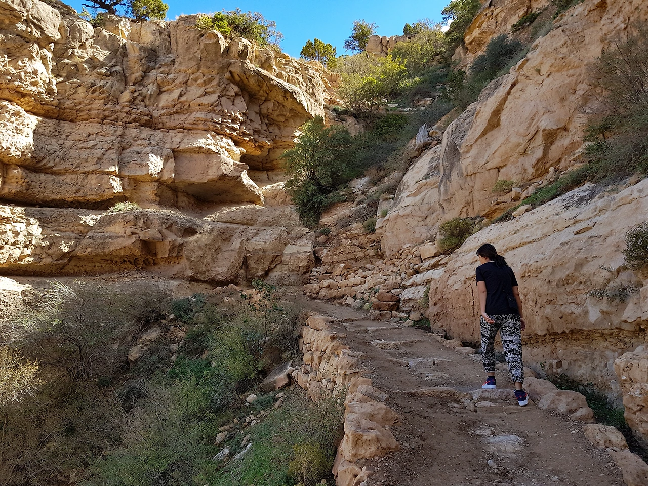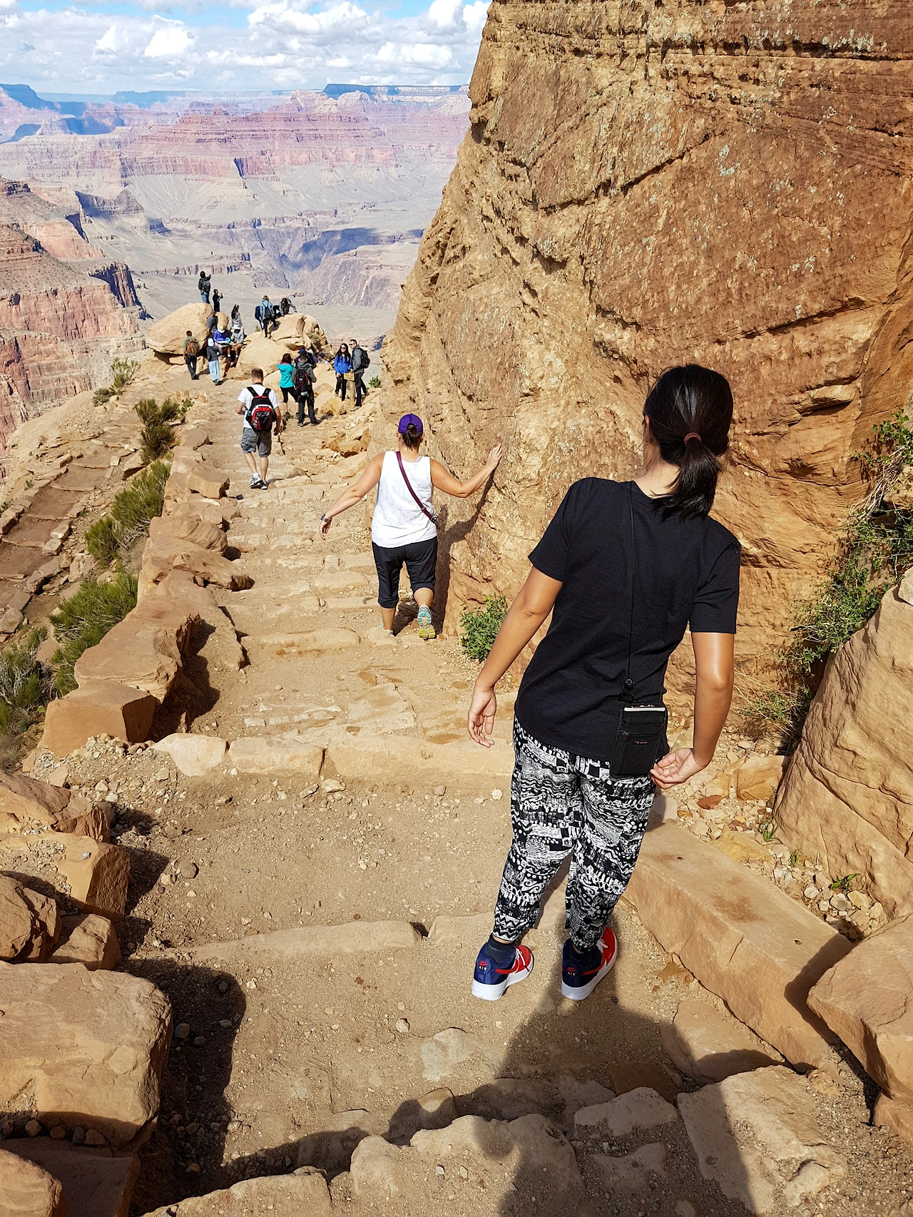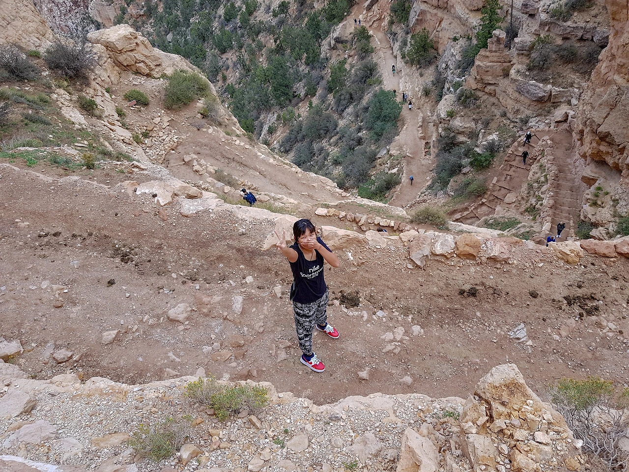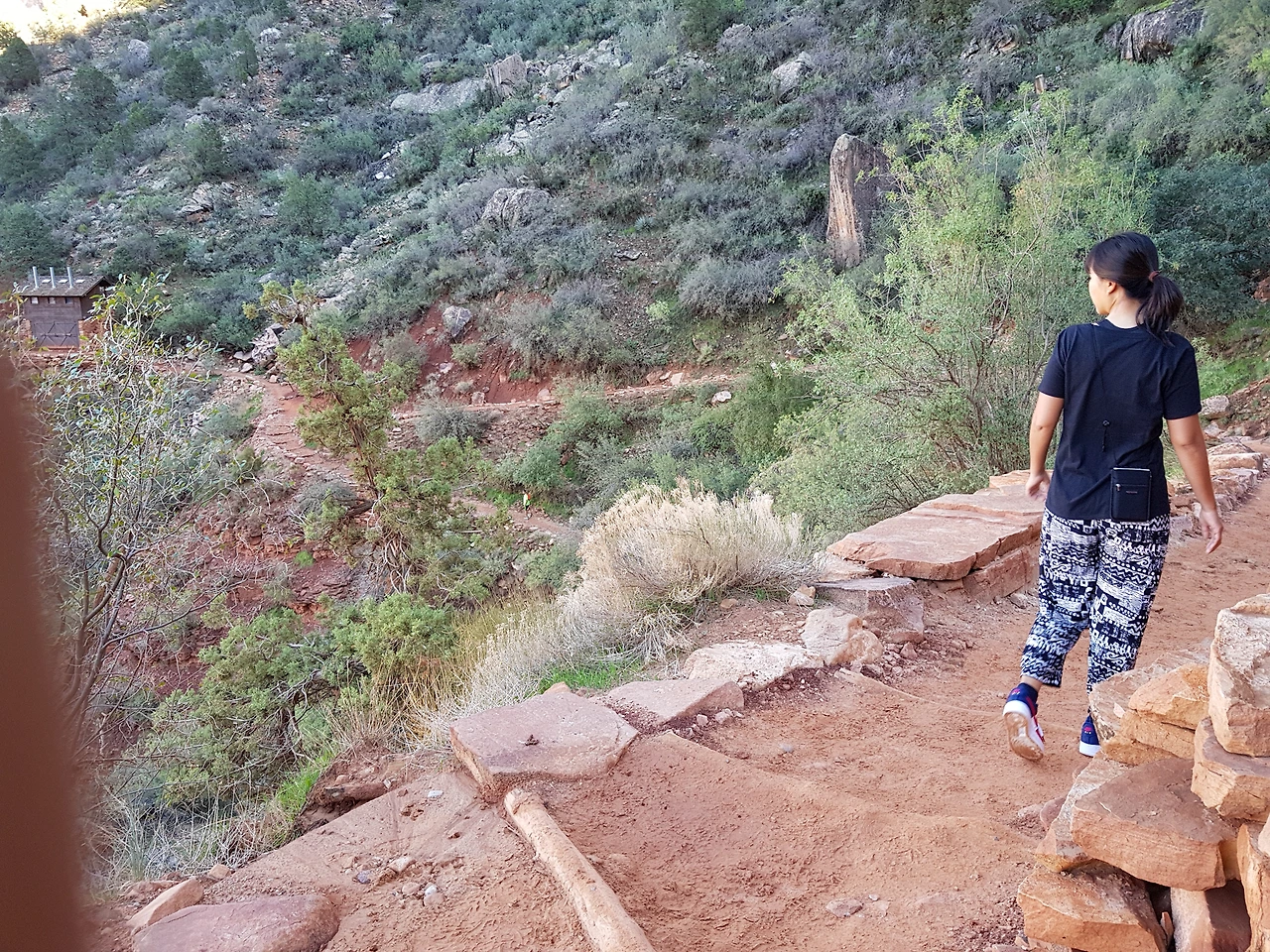 카이밥 트레일은 그랜드 캐년의 가장 밑바닥이자 그랜드 캐년의 모습을 만든 콜로라도강을 지나 그랜드 캐년의 북부 지역인 노스림까지 이어지지만 20여 km의 거리에 해발 고도차도 어마어마한 길 전부를 당일로 왕복하기는 무리다. 우리는 입구부터 2 km남짓의 거리에 고도차 200m 정도인 우아 포인트 (Ooh aah point)까지만 다녀오기로 했다.