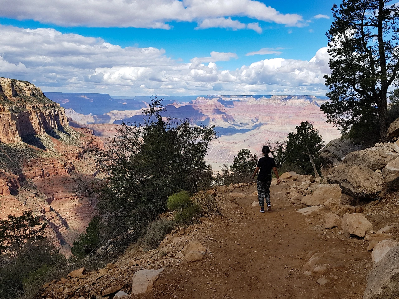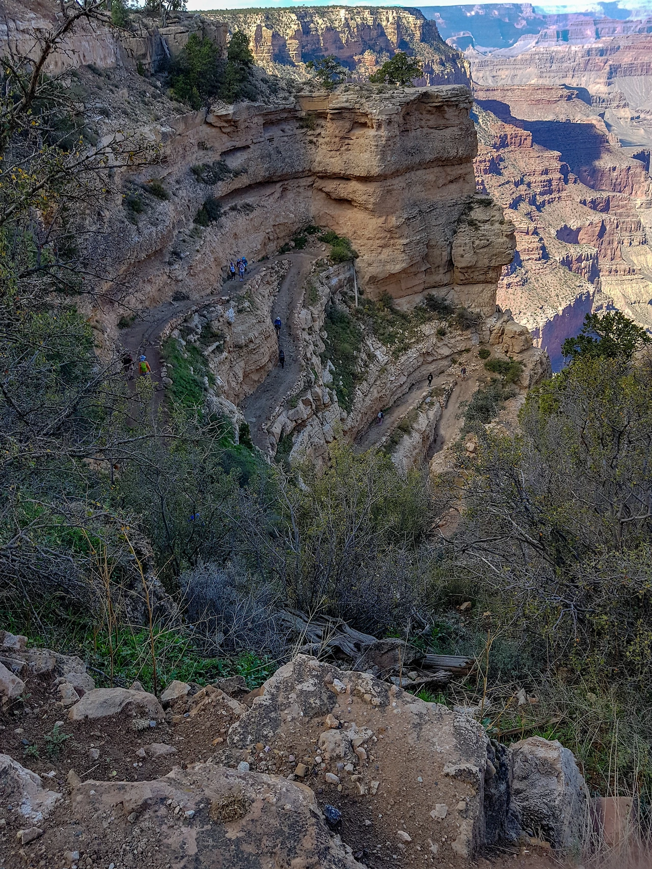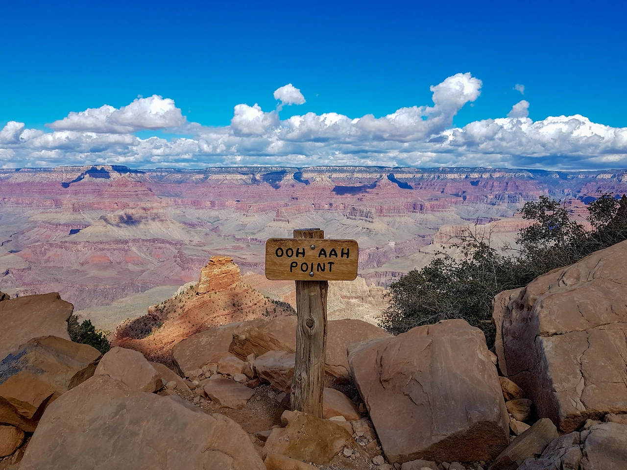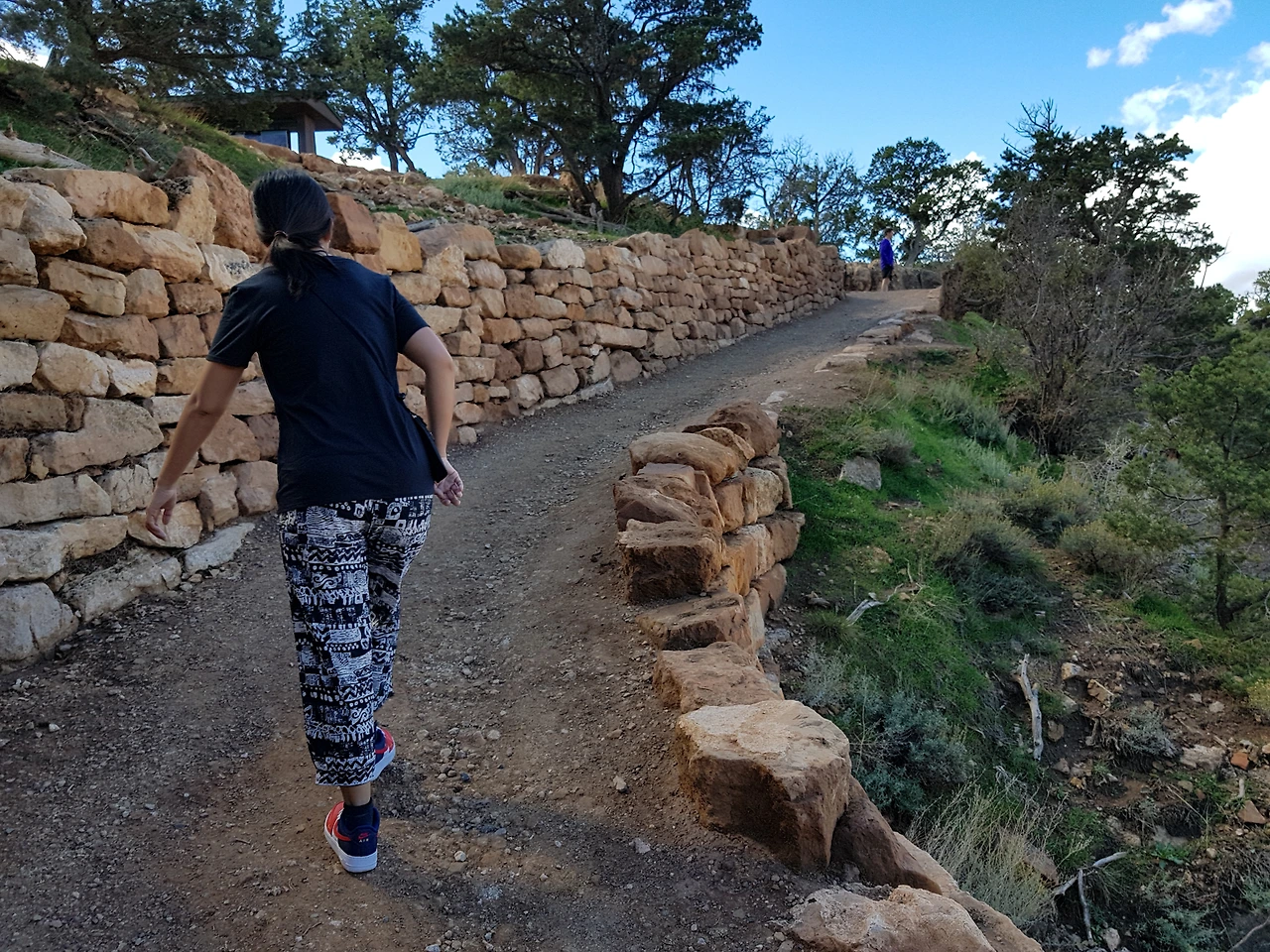 카이밥 트레일은 그랜드 캐년의 가장 밑바닥이자 그랜드 캐년의 모습을 만든 콜로라도강을 지나 그랜드 캐년의 북부 지역인 노스림까지 이어지지만 20여 km의 거리에 해발 고도차도 어마어마한 길 전부를 당일로 왕복하기는 무리다. 우리는 입구부터 2 km남짓의 거리에 고도차 200m 정도인 우아 포인트 (Ooh aah point)까지만 다녀오기로 했다.