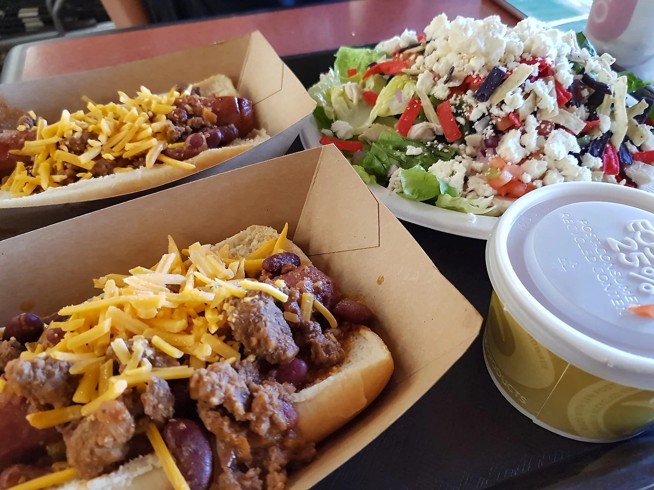 큼직한 핫도그와 샐러드로 조촐한 점심을 먹는다. 빌리지 안쪽의 식당들은 비싼데다가 특별한 것도 없다고 해서 간단히 먹으려 했는데 생각보다 맛있고 배도 부르다.