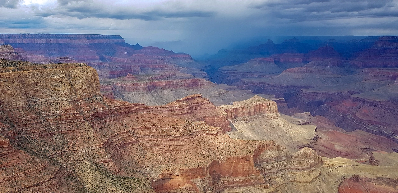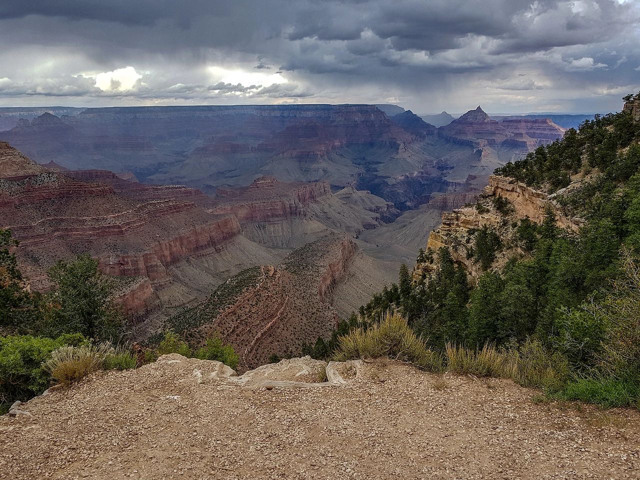 모란 포인트(Moran point)에 들렀다. 그랜드캐년 빌리지 쪽은 한참 비가 오는 것 같다. 맑을 때와는 또 다른 신비한 분위기가 연출된다.