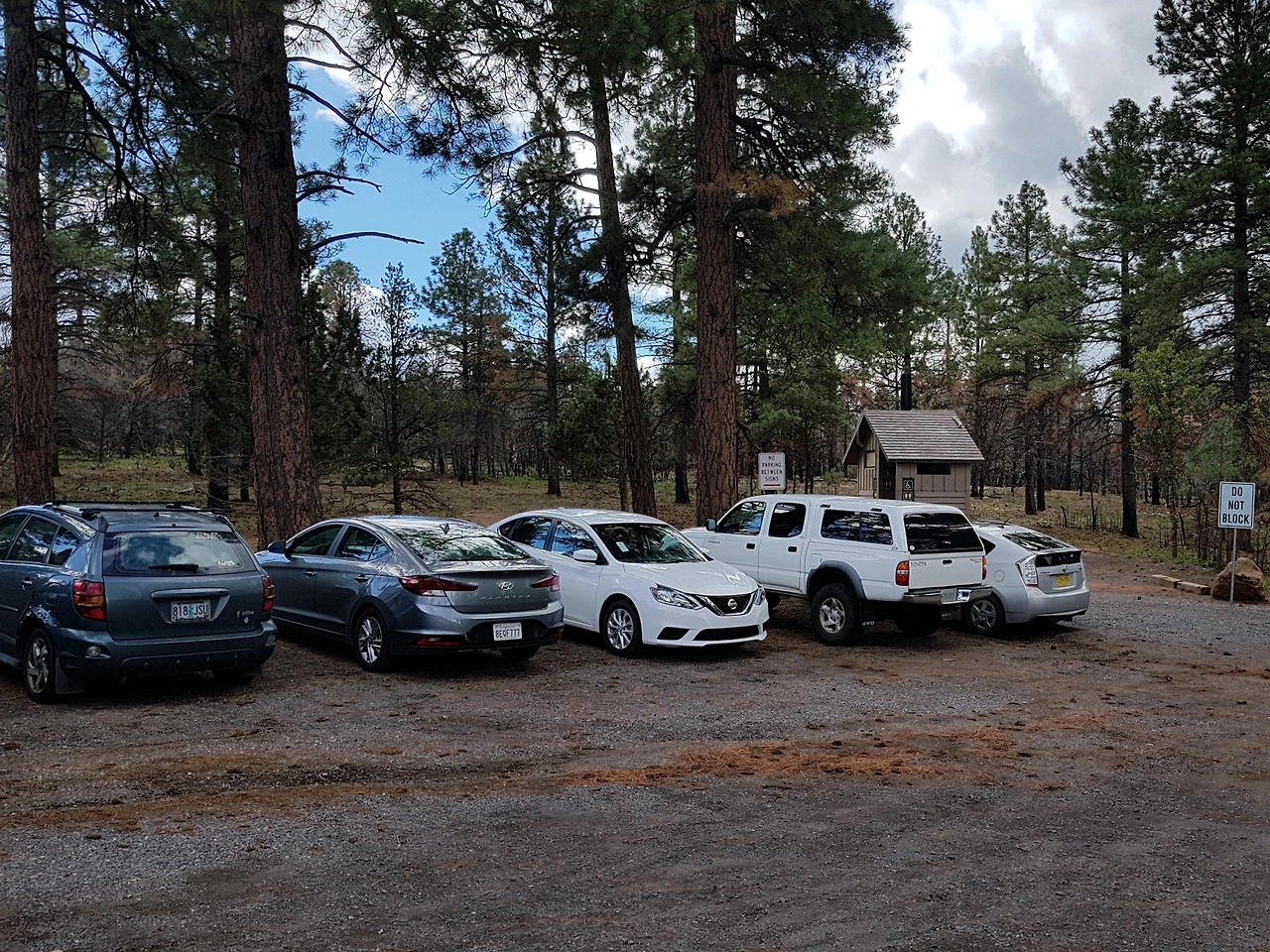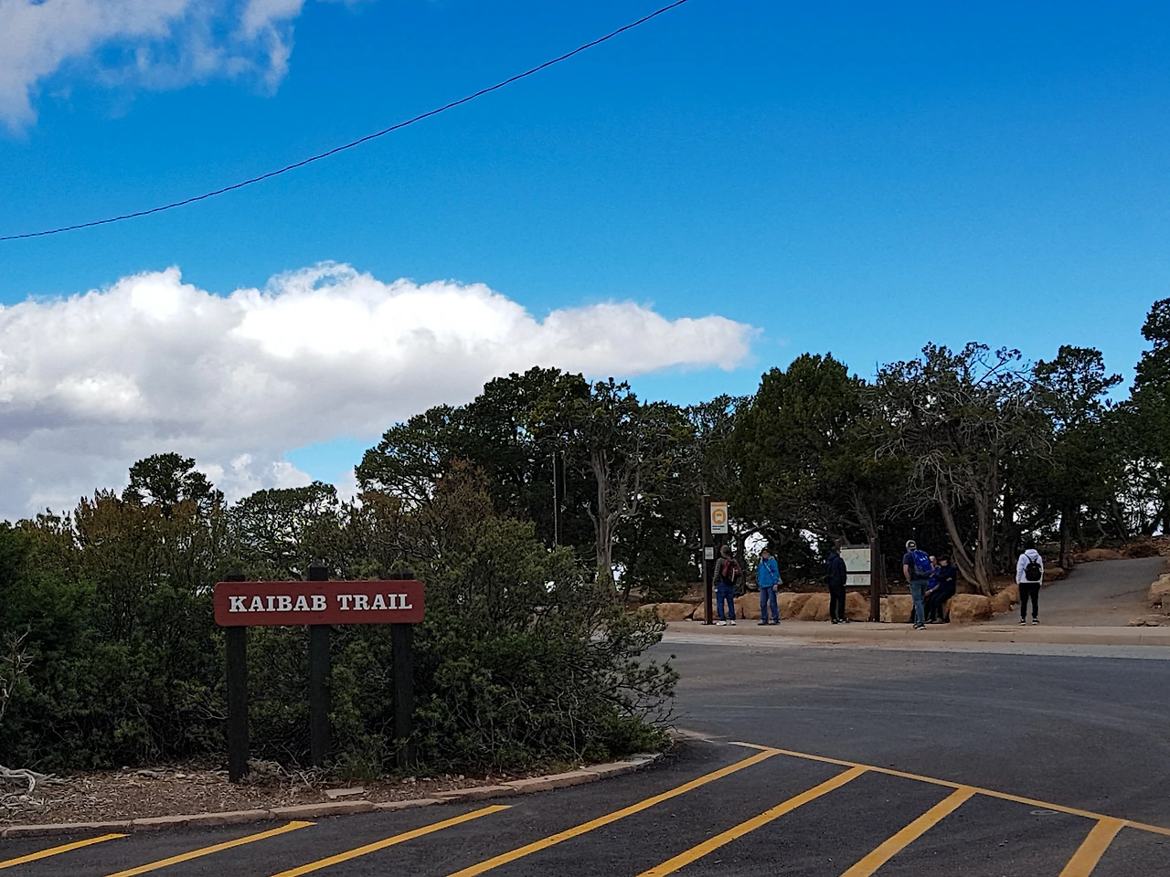 그랜드 캐년에서 간단한 트레일을 다녀오려면 어디를 가는게 좋을까? 정답은 카이밥 트레일(Kaibab trail)이다. 셔틀버스를 타면 카이밥 트레일의 입구까지 갈 수 있지만 일반 차량은 중간 갈림길에 주차하고 걸어가야 한다. 그랜드 캐년을 보면서 걷는데 좀 걸어도 상관없지. 입구 근처의 주차 공간이 넉넉하지 않은데 차 한 대가 금방 빠져나가 자리가 생겼다. 운이 좋았다.