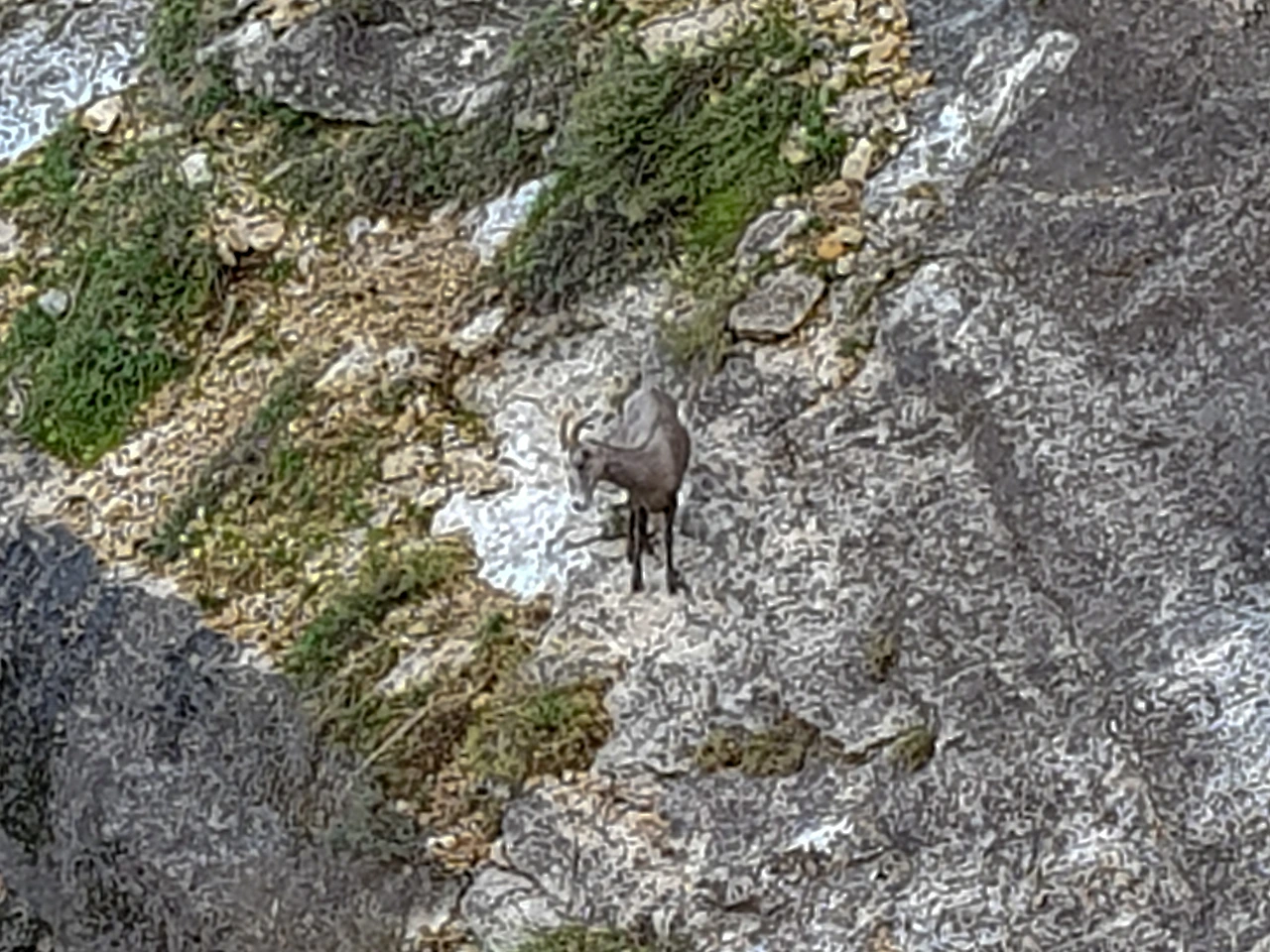 걸어내려가는데 사람들이 무언가를 보고 있다. 잘 보니 산양 한 마리가 바위 위에서 쉬고 있다. 사람들이 잔뜩 모여 무언가를 보고 있으면 야생 동물이 나타났다는 것이다.