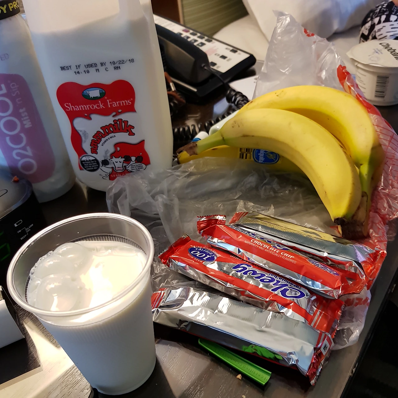어제 제네럴 스토어 마트에서 아침 먹을 것들을 사놓았다. 우유, 칼로리바, 바나나, 요거트로 아침을 먹는다. 냉장고가 부실해서 안쪽에 넣어둔 요거트가 얼어서 요거트 아이스크림 같이 먹었다.