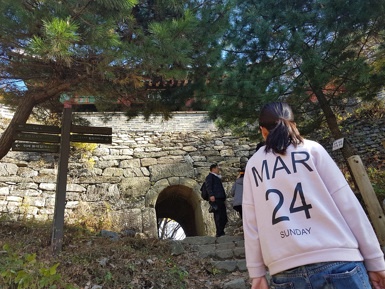 남한산성 내부는 산책로가 아주 넓고 완만하게 잘 되어 있다. 어릴 때부터 종종 올라왔던 곳이라 내부 산책로는 대부분 알고 있는데 오늘은 성벽 바깥의 둘레길을 따라서 남문까지 가보기로 한다. 지니님에게도 힘들거라고 미리 경고를 했지만 가도 좋다고 확인받았다. 성에서 외부로 몰래 드나드는 용도로 사용했던 암문을 통해 성벽 밖으로 나간다.