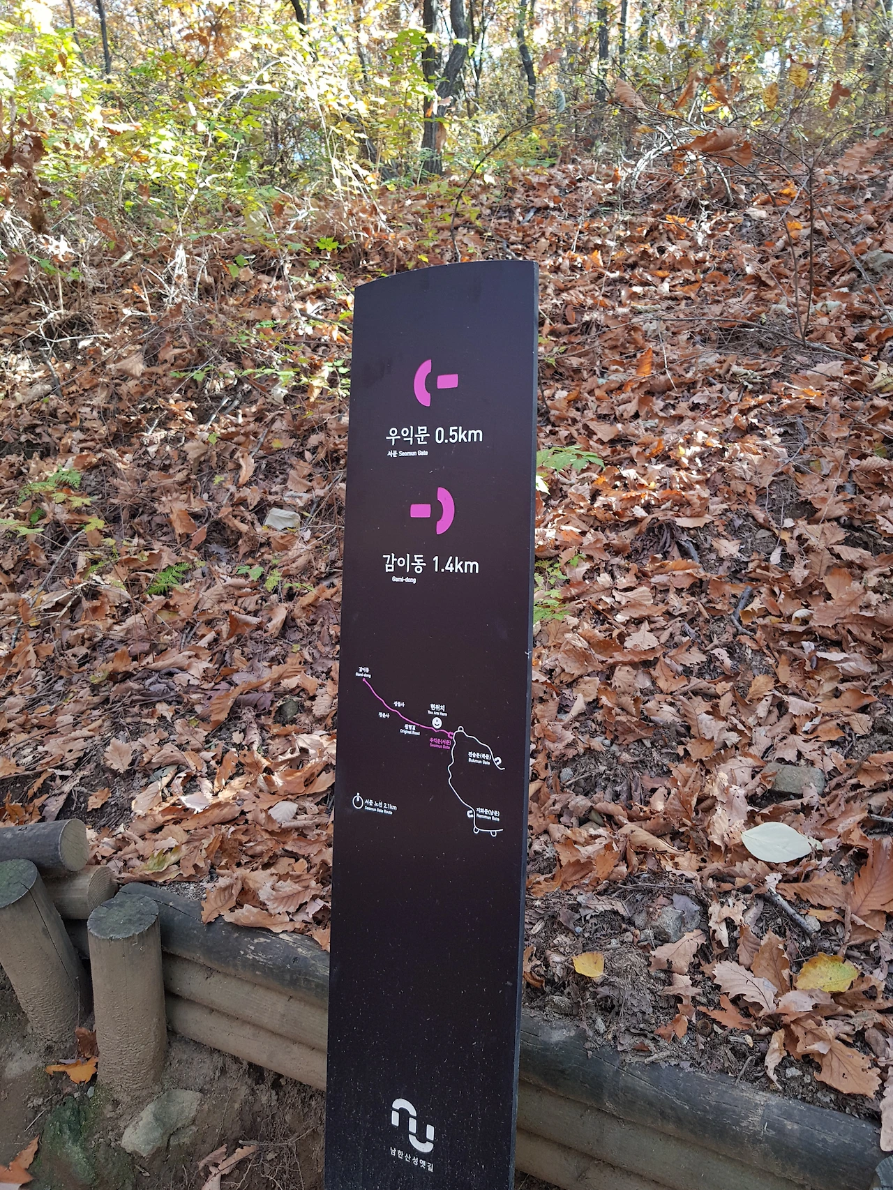 원래 목표는 우익문인데 수어장대로 가는 이정표가 있어서 그리로 가보지만 결국 중간 갈림길에서 다시 우익문 방향으로 가게 되었다.