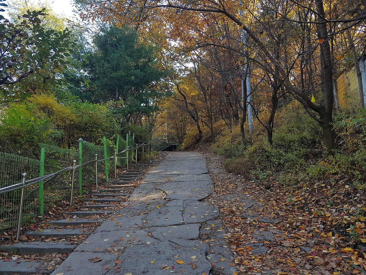 남문에서 성남 방향으로 내려간다. 여기서부터는 경기도 성남이다. 내려가는 길에는 약수터도 여기저기 있고 포장된 콘크리트길이라 그리 어렵지 않다. 어릴 적에 할머니에게 끌려나오다시피 억지로 약수터에 물 뜨러 다녔던 기억이 있다. 고작 약수터도 나가기 싫어했던 아이가 커서 이제는 전국, 전세계를 돌아다니고 있다.