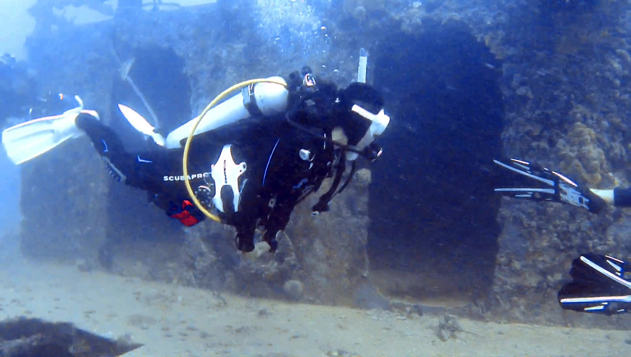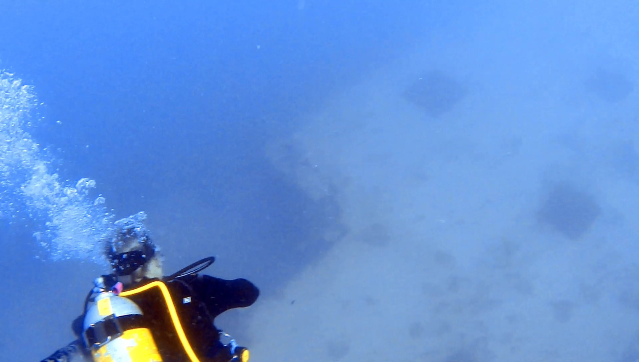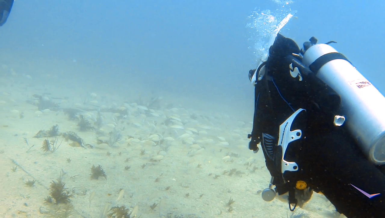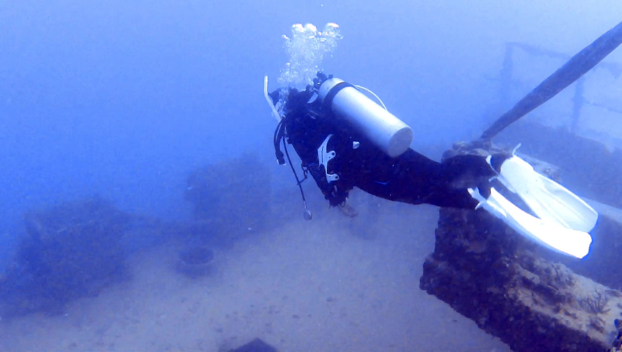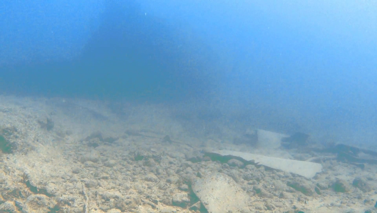 시야가 썩 좋지 않지만 큰 문제는 없다. 해저 여기저기에 배 파편이 널려 있다.
