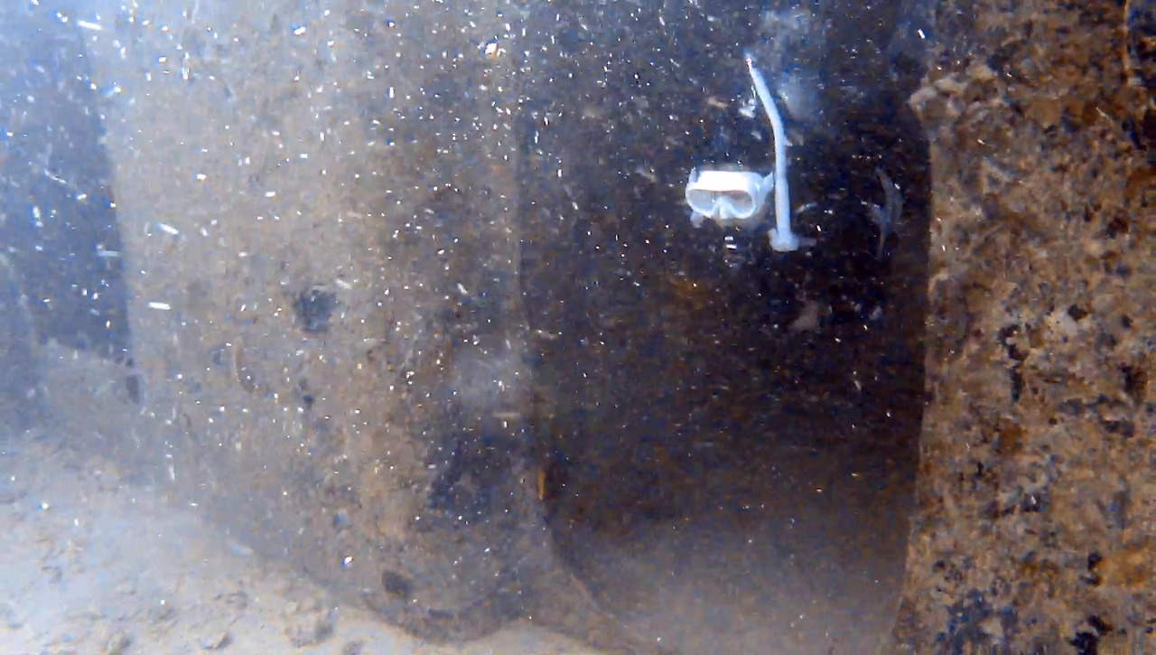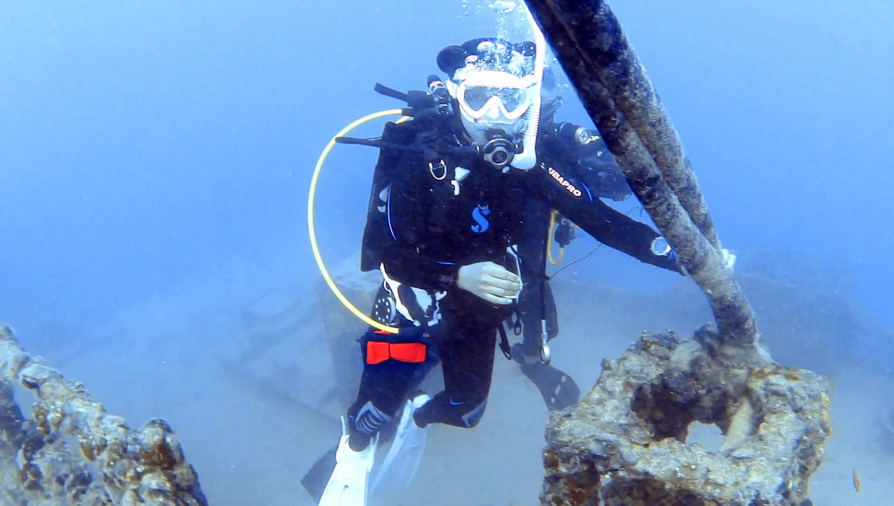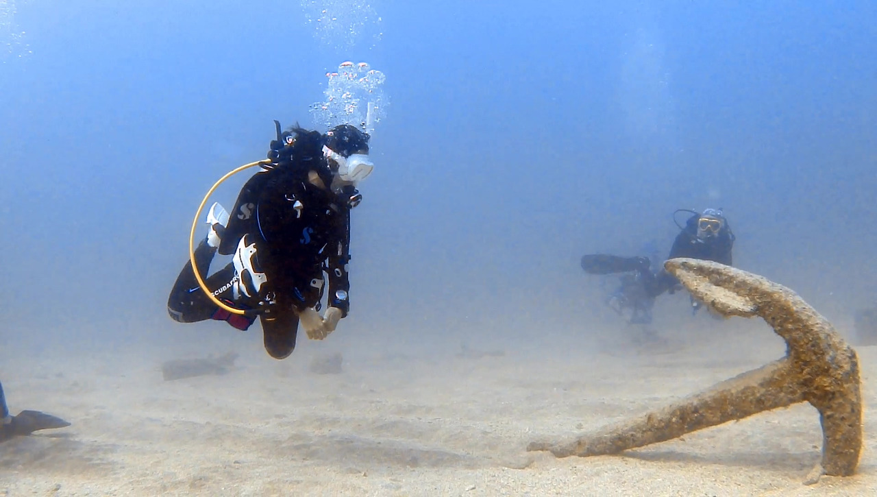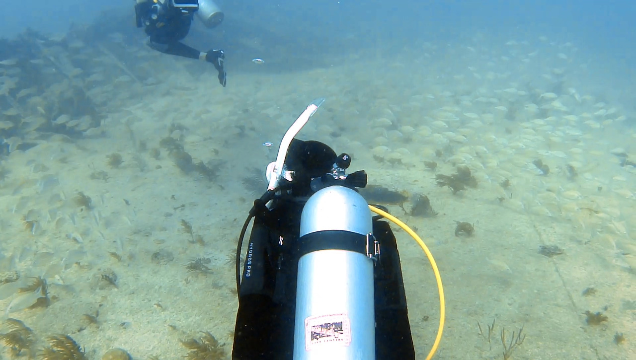 시야가 썩 좋지 않지만 큰 문제는 없다. 해저 여기저기에 배 파편이 널려 있다.