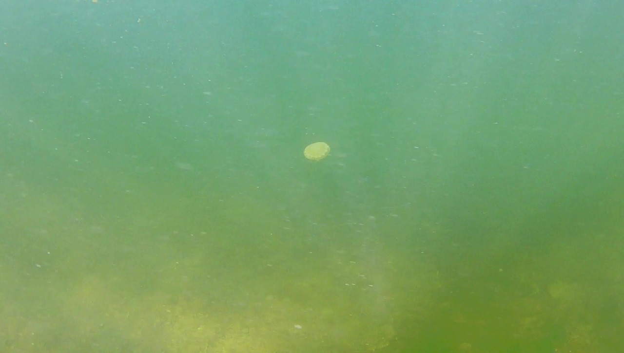 좀 더 깊은 곳에 가니 해파리가 한 마리 보인다. 물이 지저분하긴 한가보다.