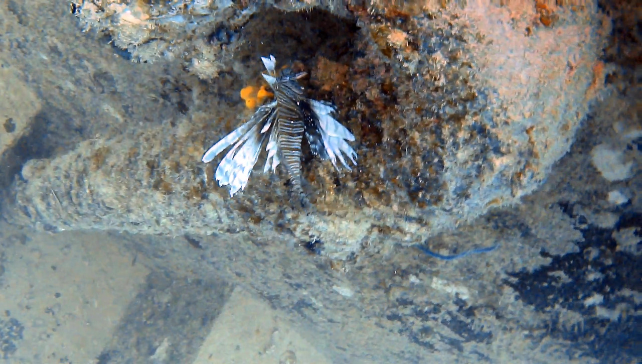 라이언피시가 ? 모양으로 휘어있는 함교 전방 파이프 라인 가운데에 살고 있다. 이 녀석들은 이렇게 적당히 움푹 파인 곳을 유난히 좋아한다.