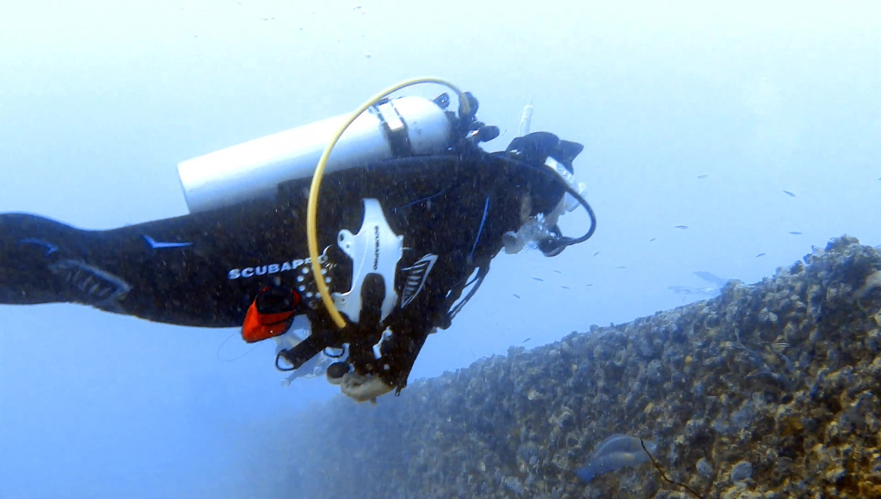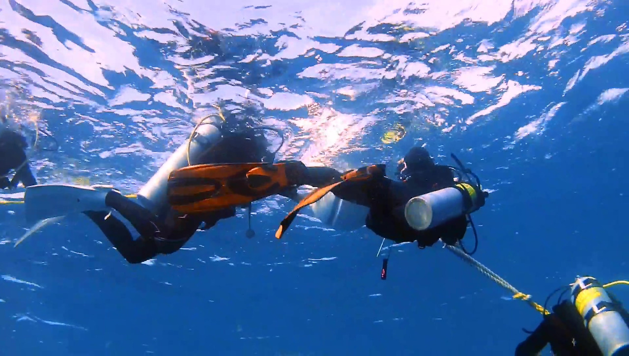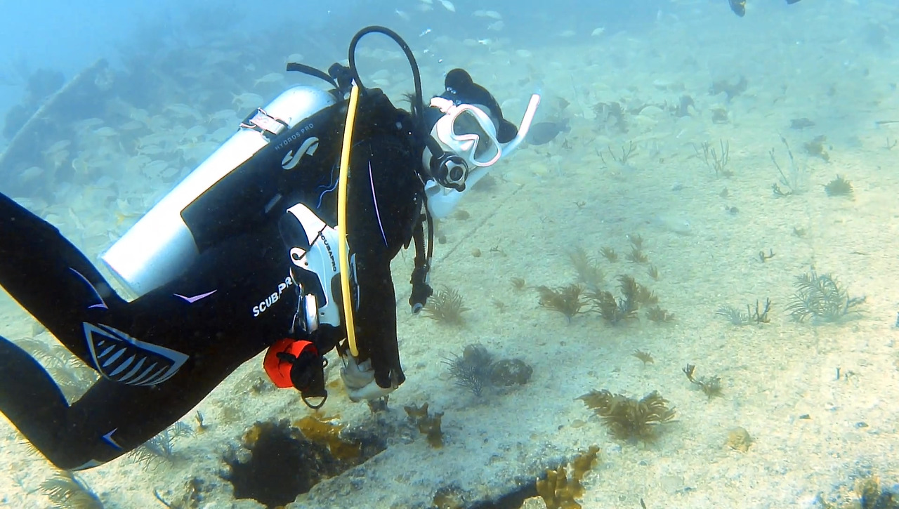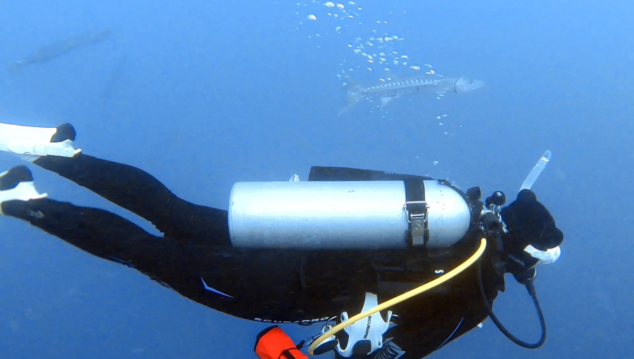 시작은 항상 비슷하다. 입수해서 인원 및 장비를 점검하고 나면 배 선수를 고정한 흰 부표까지 줄을 잡고 이동하여 그대로 줄을 따라 내려가기만 하면 된다.