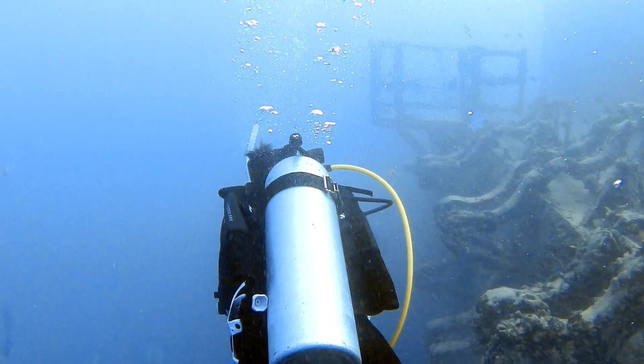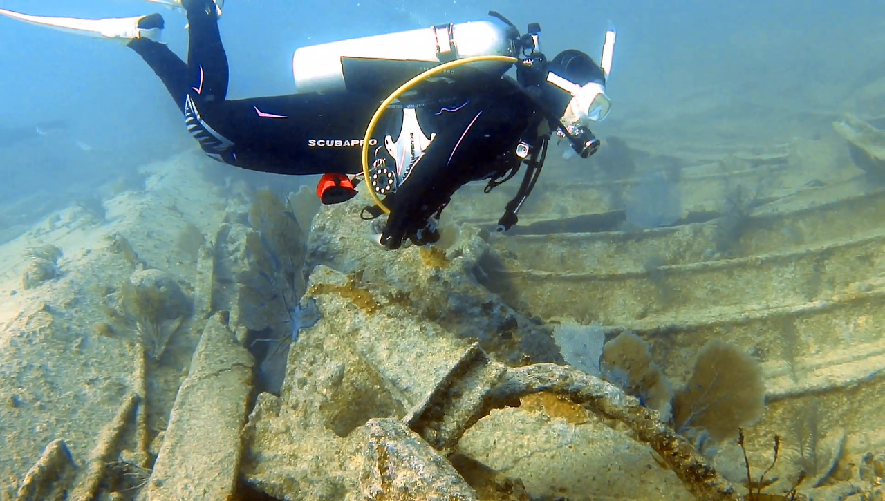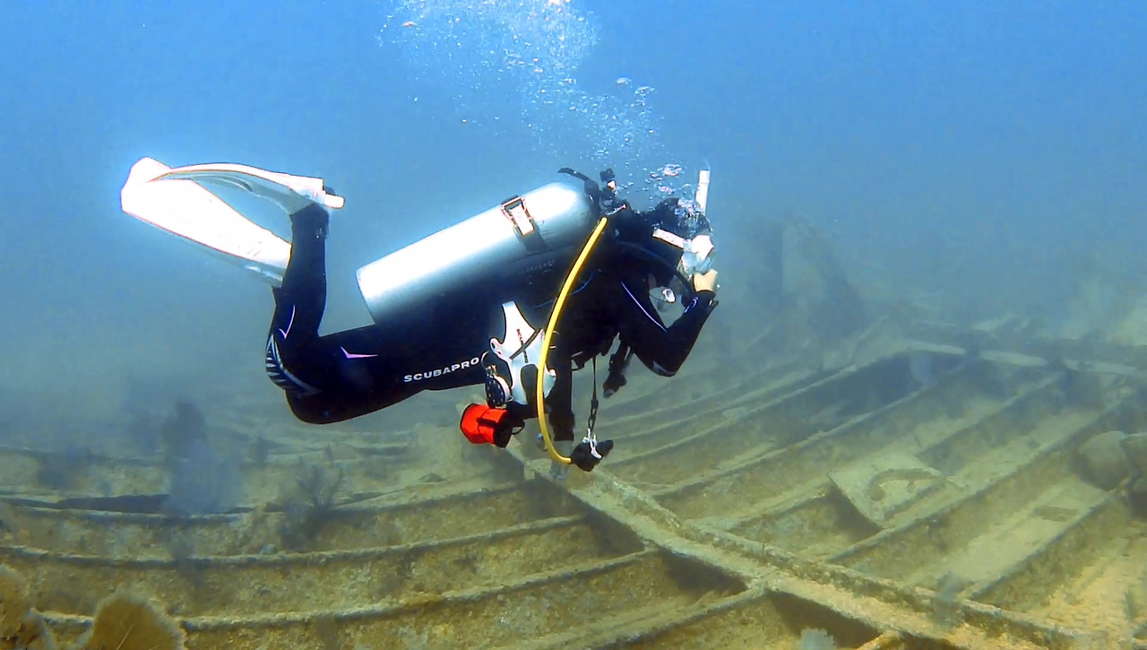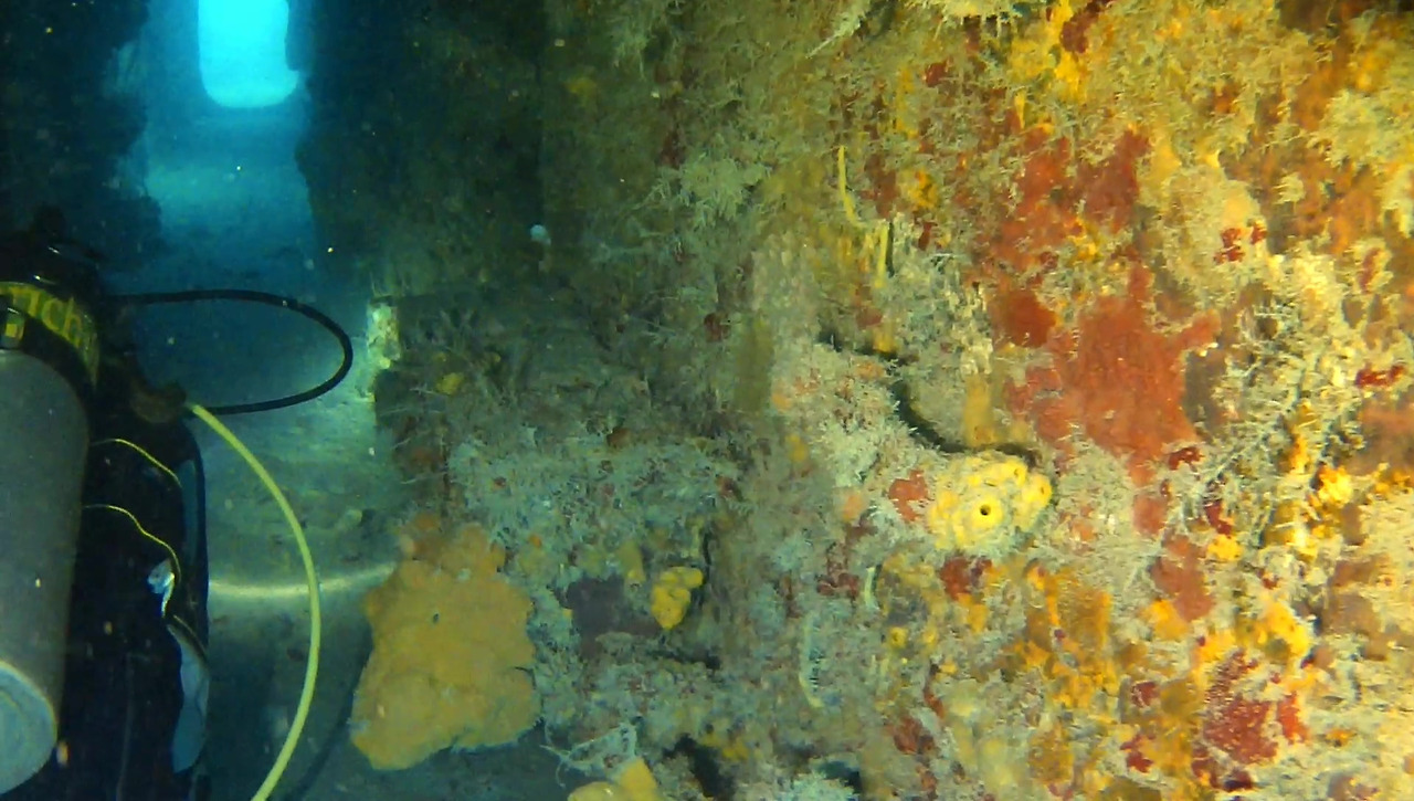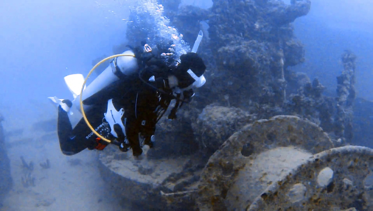 침몰한 지 80년이 되어가는 난파선이지만 그럭저럭 형태를 유지하고 있다.
