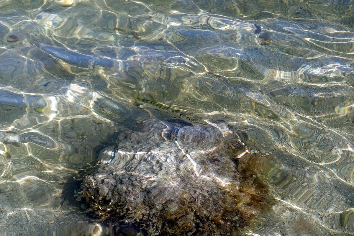 조그만 바라쿠다 한 마리가 근처에 사람이 왔다 갔다 하는데도 그냥 둥둥 떠있다.