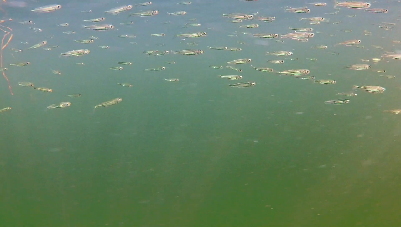 예상했던 대로 뿌연 물속에는 작은 물고기 새끼들이 보인다.