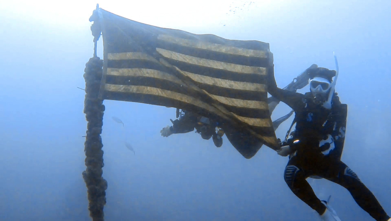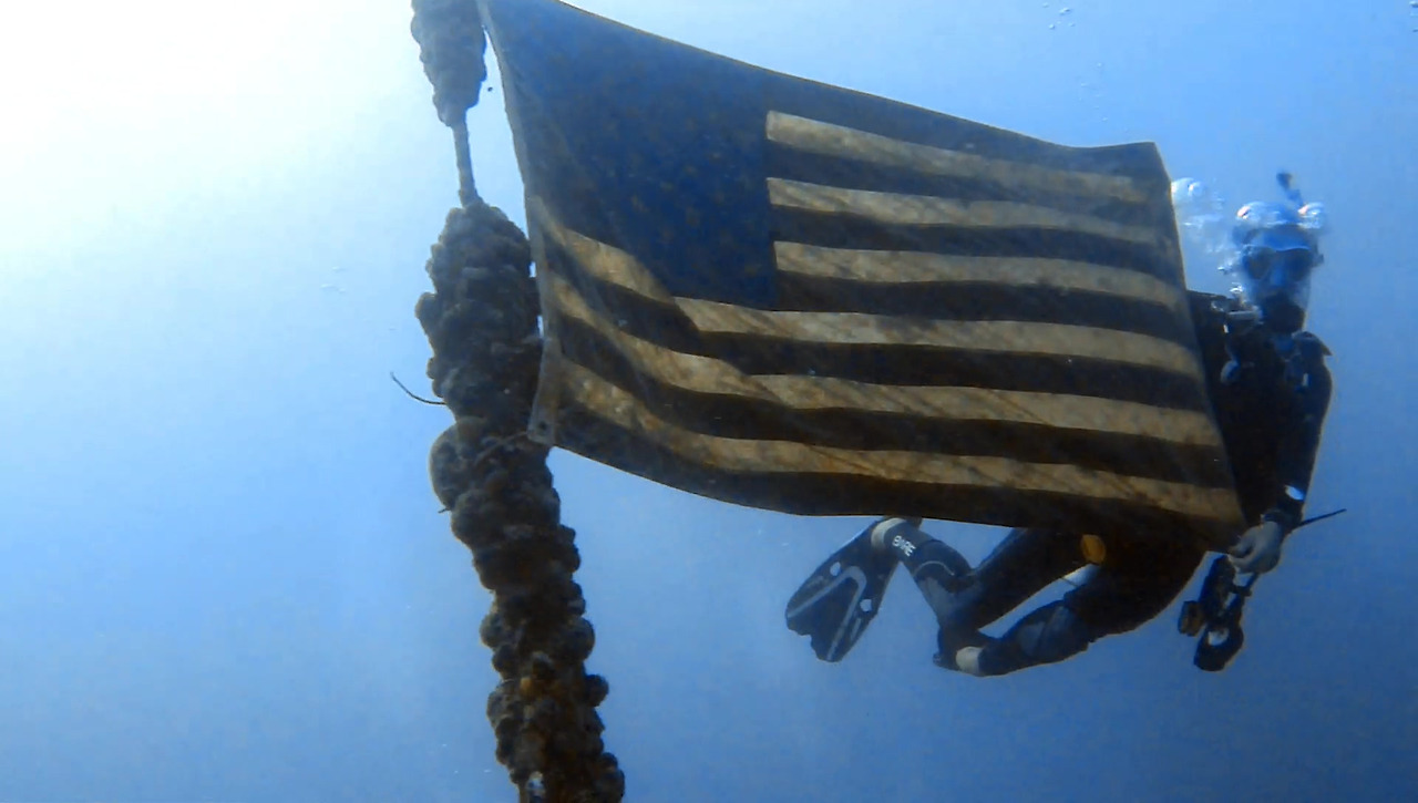 오늘 가이드는 세레니티라는 여성 다이버다. 아주 친절하고 세심하면서 꼼꼼하게 많은 것을 보여준다. 이 성조기가 어디 도망가는 것도 아닌데 지난번 가이드는 안 보여줬다.