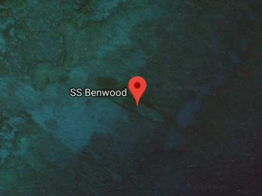 그리 깊지 않은 곳에 있기 때문에 위성사진에서도 배의 전체 형상이 보일 정도다.