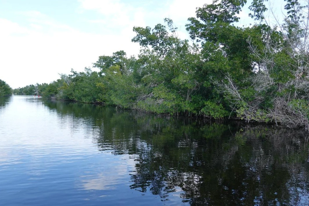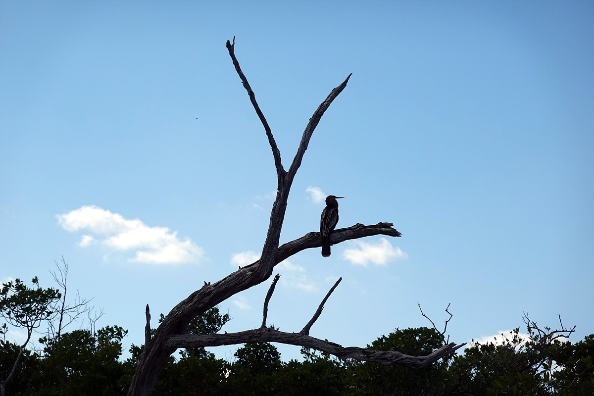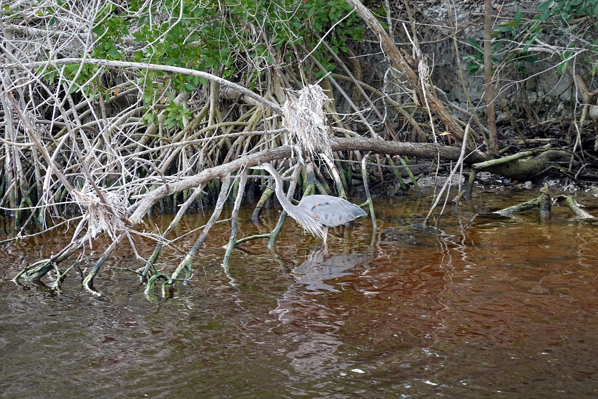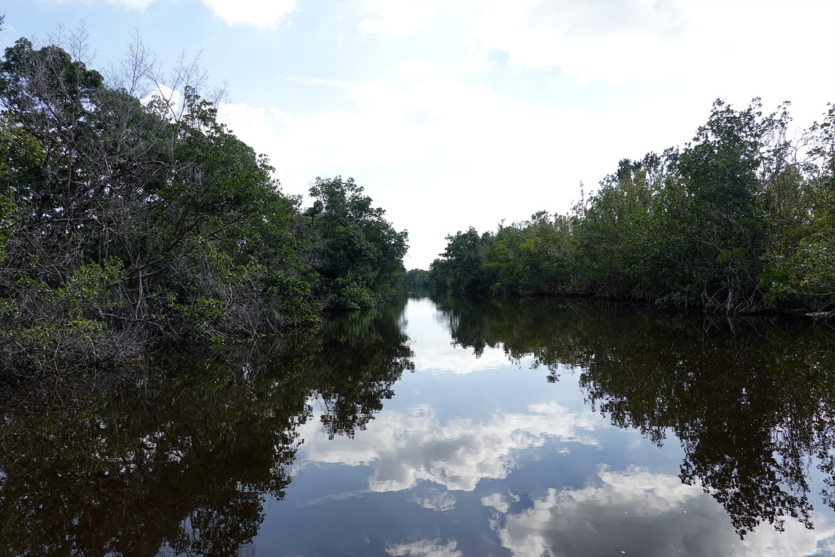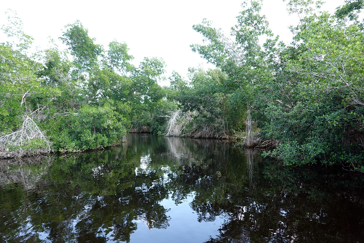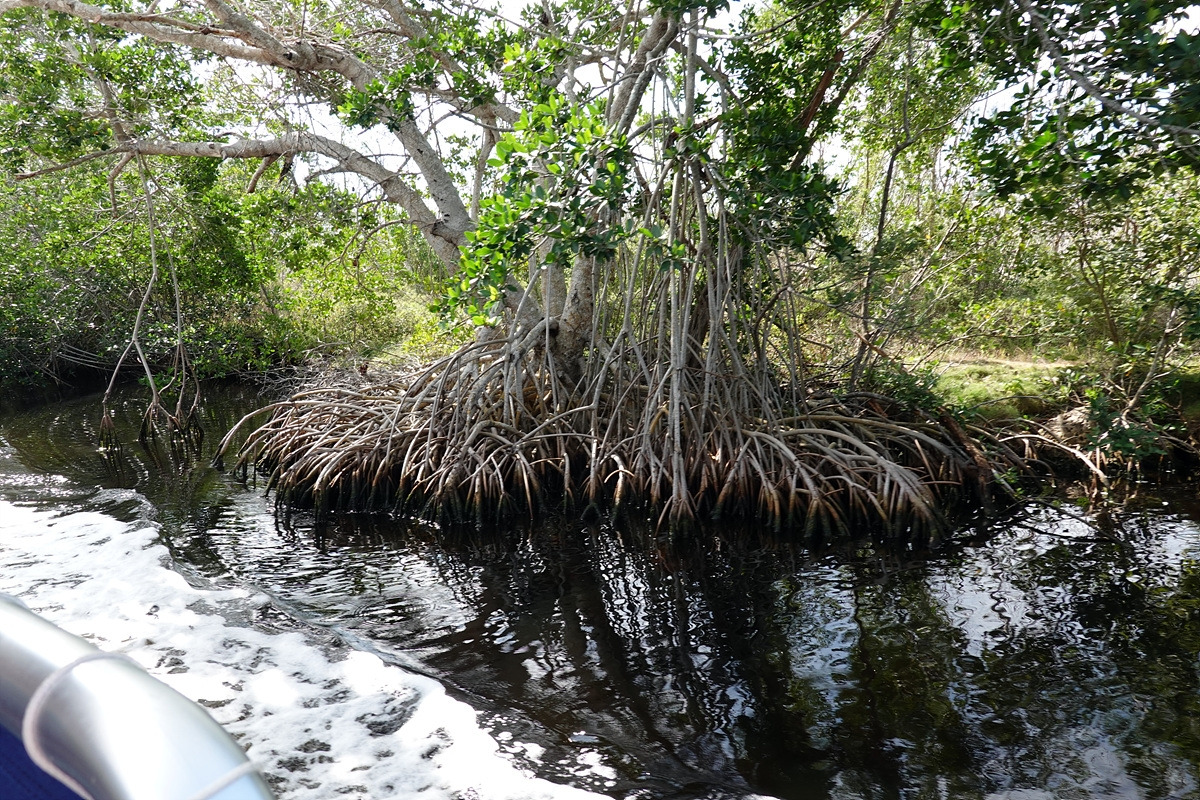 맹그로브 나무뿌리가 잔뜩 뻗어 나와있다. 물에서 살기 편하게 진화한 나무는 뿌리는 물고기들의 은신처가, 줄기는 도마뱀과 새들의 서식지가 된다.