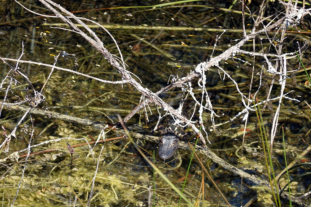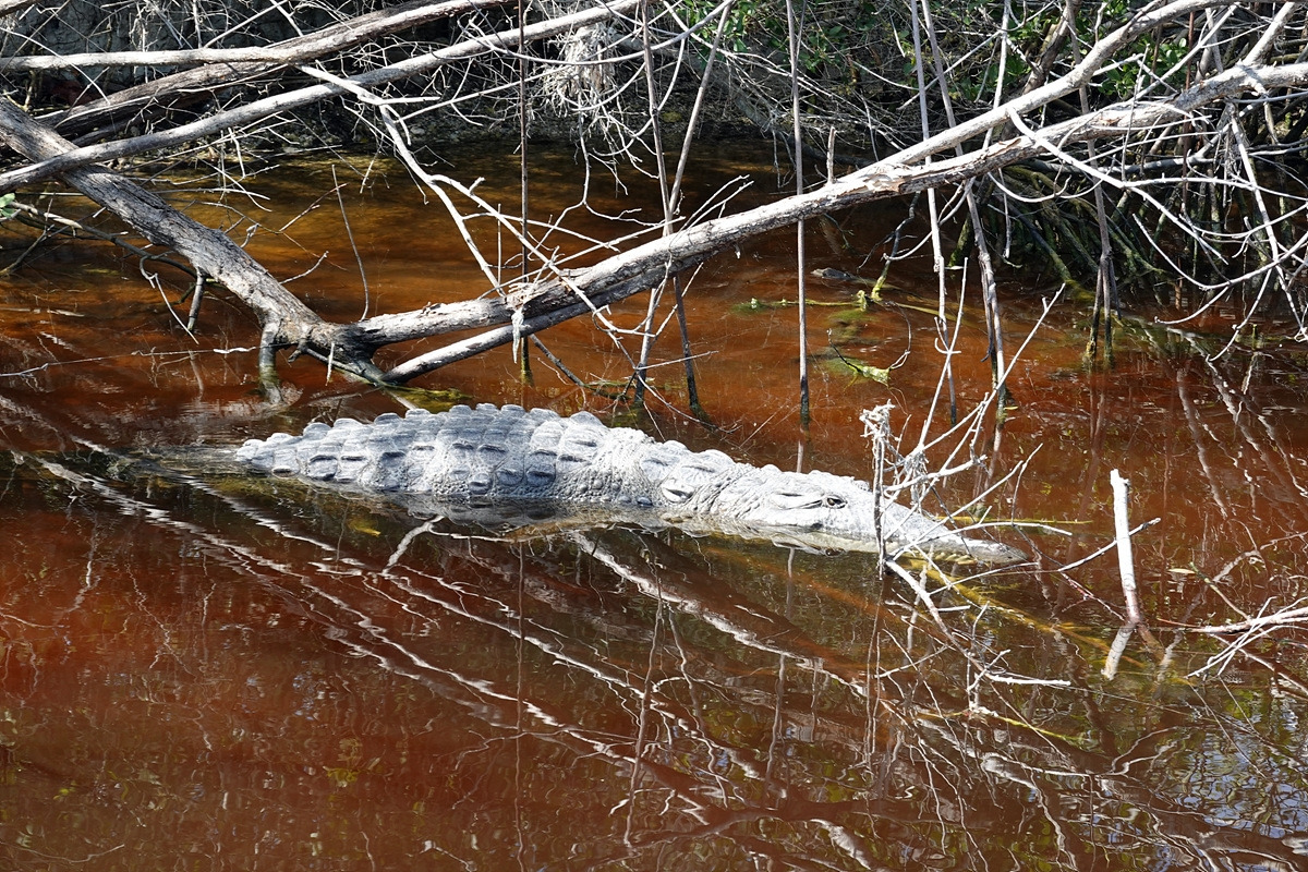 방문자 센터에서 물어보니 가장 끝의 플라밍고 센터 쪽에서 매너티를 볼 수 있다길래 가보기로 한다. 가는 길에 차 한 대가 잠시 멈췄다 가길래 우리도 멈추고 길 옆을 보니 늪지대에 악어 한 마리가 쉬고 있다.