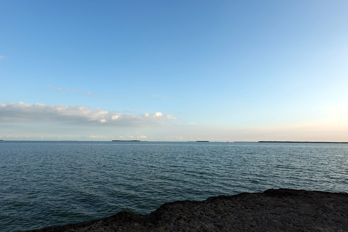 캠프 그라운드의 해변 쪽으로 가본다. 키스 열도와 산호초가 방파제 역할을 해서 플로리다 만의 물결이 잔잔하다.