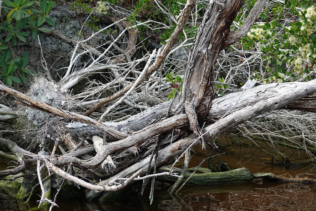 얼핏 보면 잘 보이지도 않는데 가이드는 귀신같이 찾아내서 알려준다. 여기도 악어가 한 마리 널브러져 있다.