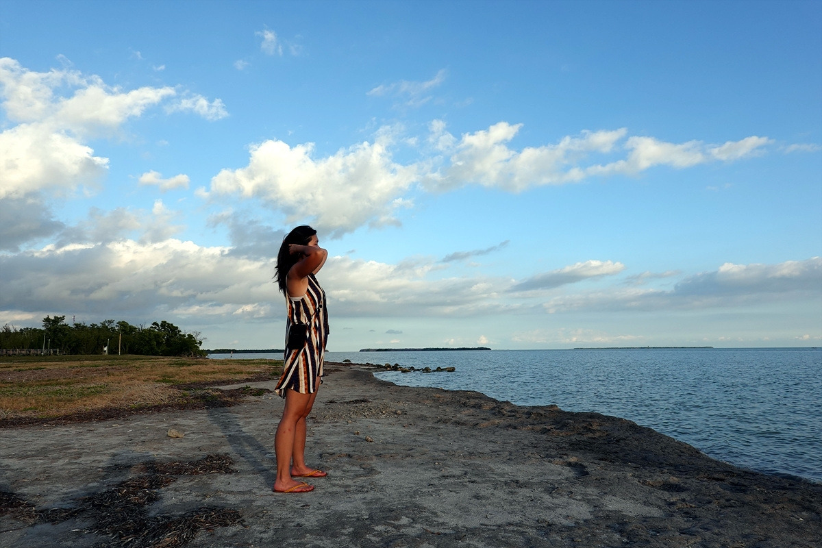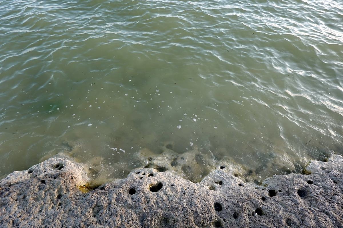 그 옆의 플라밍고 마리나 방향에 사람들이 보여 가본다. 바닷물이 왜 이리 더럽지... 존 페네캠프 주립공원 해변보다 훨씬 탁하다.