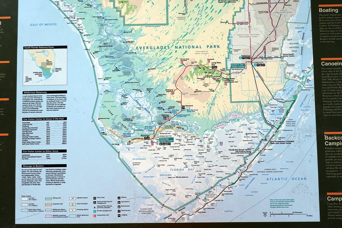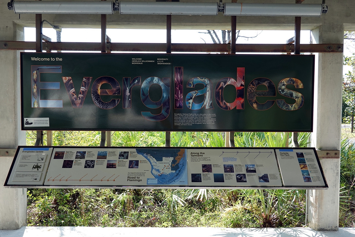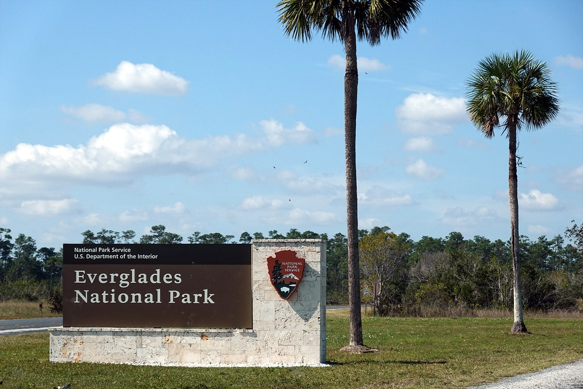 에버글레이즈 국립공원은 키스 열도와의 경계부터 플로리다 남부의 큰 늪지대 전부이다. 도로라고는 메인 파크 도로 하나밖에 없다.