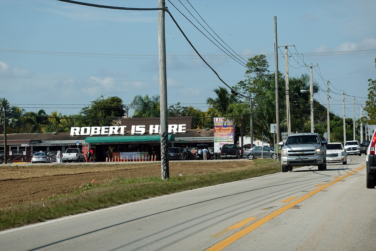 에버글레이즈 국립공원 가는 길에 유명한 과일가게가 있다. 로버트 이즈 히어라는 이 가게는 원래 망해가던 가게였는데 이름을 이렇게 바꾸고부터 대박을 쳤다고 한다. 세계에서 가장 유명한 과일가게라고 광고하는데 모르겠다. 이미 먹을 것을 충분히 샀으니 들러도 사지도 않을 텐데 일부러 들르기도 애매해서 그냥 지나간다.