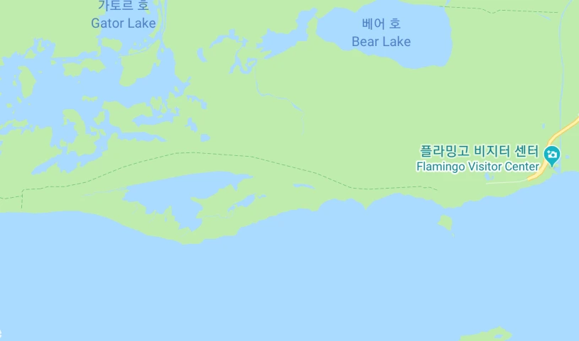 에버글레이즈 국립공원은 미국에서 세 번째로 큰 공원이라고 한다. 매표소에서 60km를 달려야 에버글레이즈 국립공원의 도로 끝인 플라밍고 비지터 센터에 도착할 수 있다.