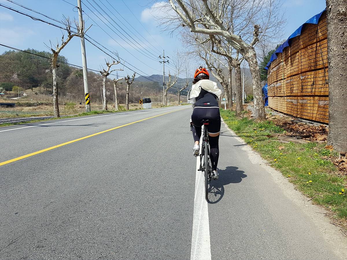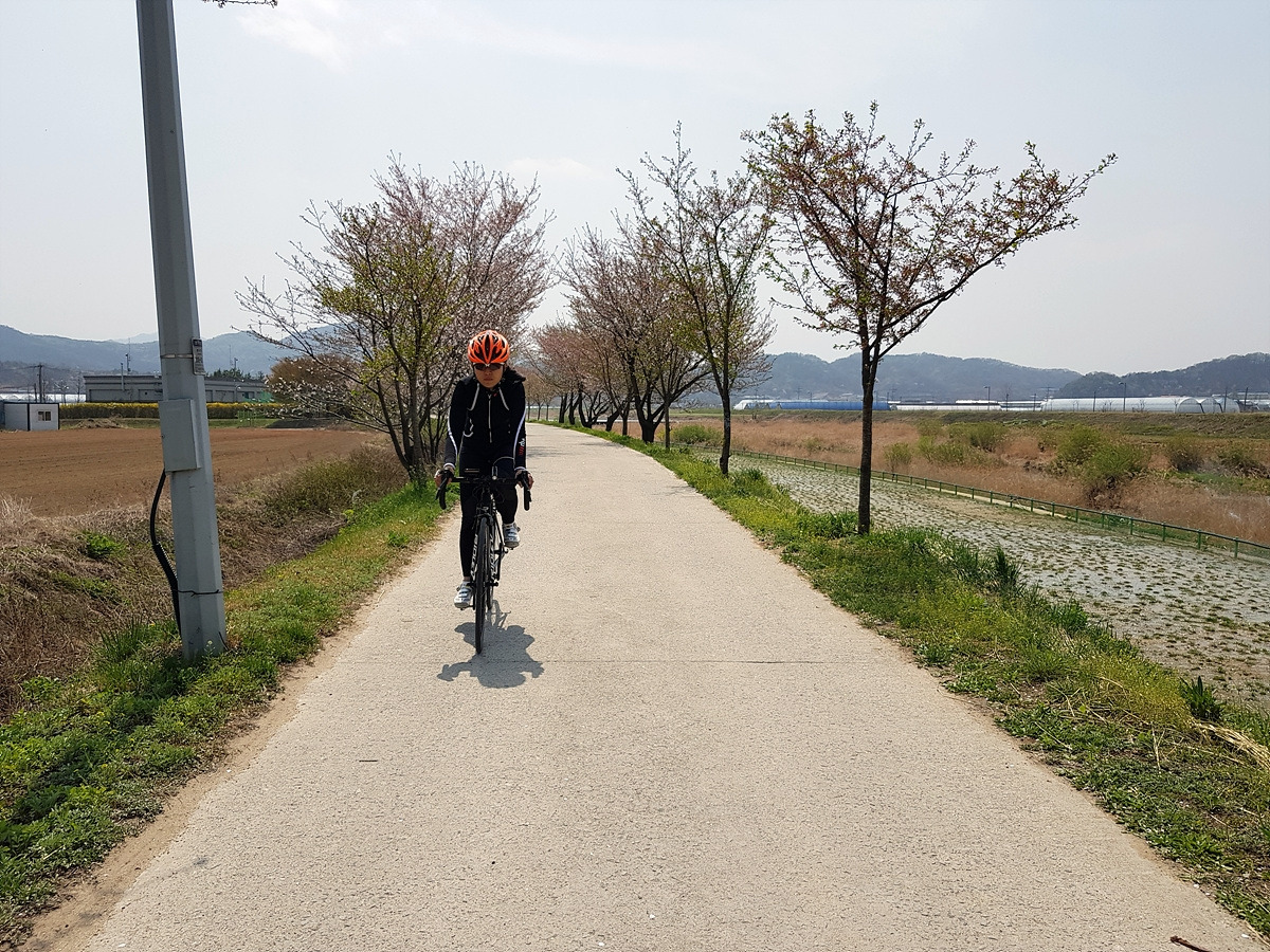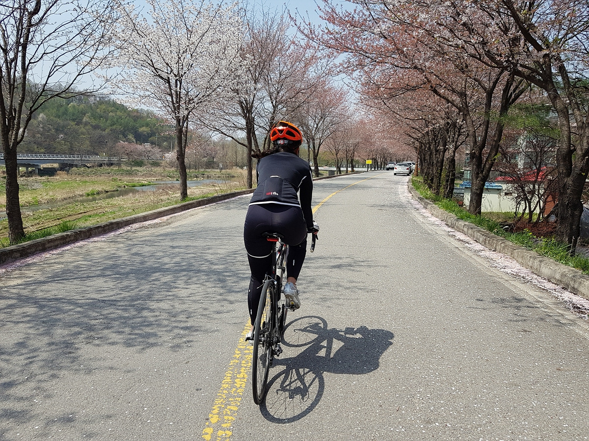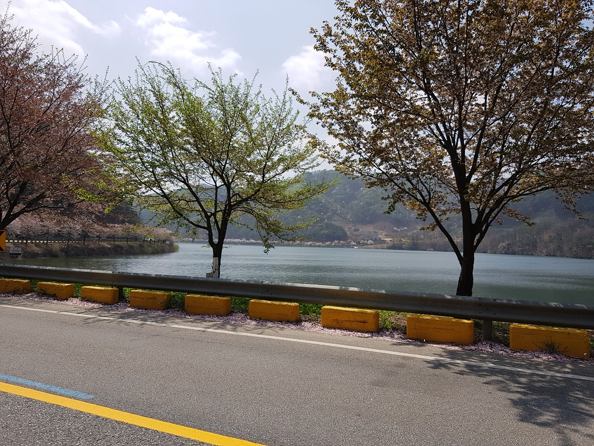 이 길은 응천 10리 벚꽃길이라 하여 지난 주에 벚꽃이 만개했는데 이미 다 져버렸다. 강가에 조성한 벚나무길이 충분히 자라서 이제는 지역에서 유명한 벚꽃 명소가 되었다고 한다. 내년에는 한 주 일찍 와야겠다.