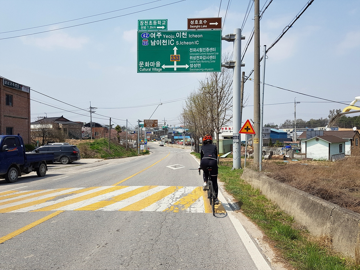 세종대왕릉 근처인 양섬을 지나면 자전거길을 따라서 여주시내로 들어가지 말고 333번 도로와 다시 만나서 여주역으로 가야 한다. 여주역은 여주시내에서는 꽤 외곽에 있다.