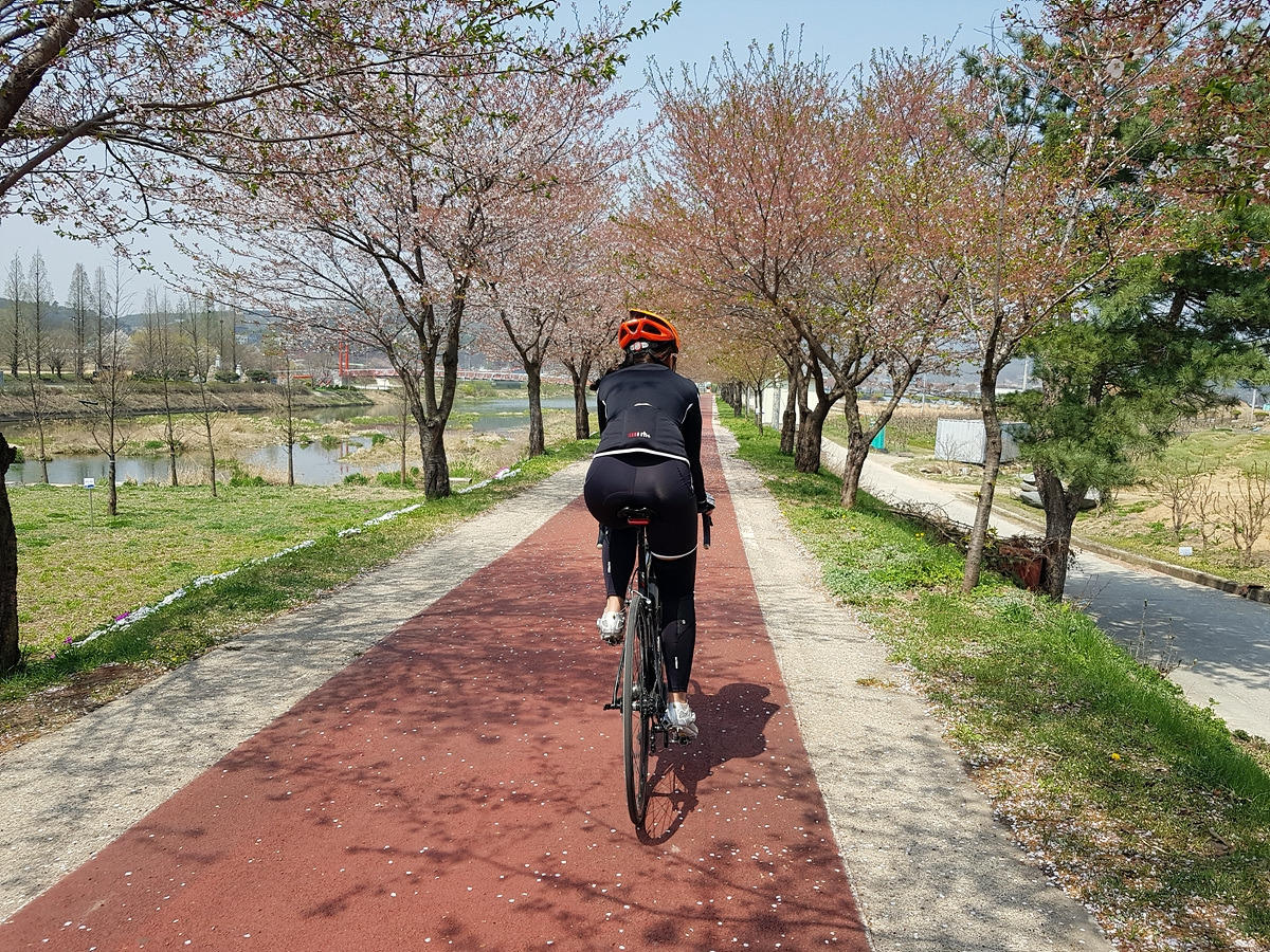 벚나무들을 따라서 달리다 보면 강변길이 끝난다. 다시 음성로를 따라서 북쪽으로 달린다.