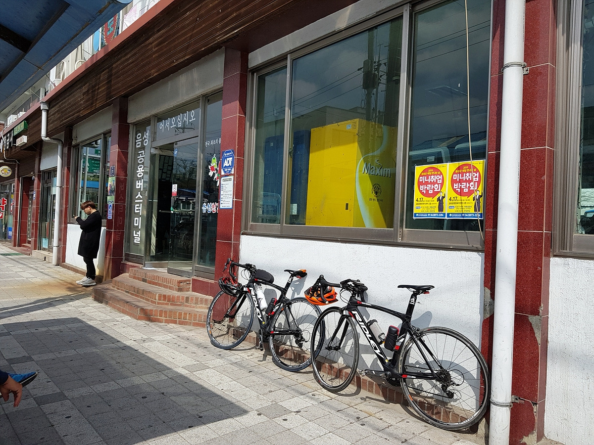 처음에는 생극에서 출발해볼까도 생각했는데 동서울에서 생극에 가는 시외버스는 충주 가는 버스라서 사대강길을 달리는 자전거객들과 섞이면 버스에 자전거를 싣기 힘들다. 음성을 종착으로 가는 시외버스로 가니 화물칸이 우리 자전거들 말고는 텅텅 비어있다.