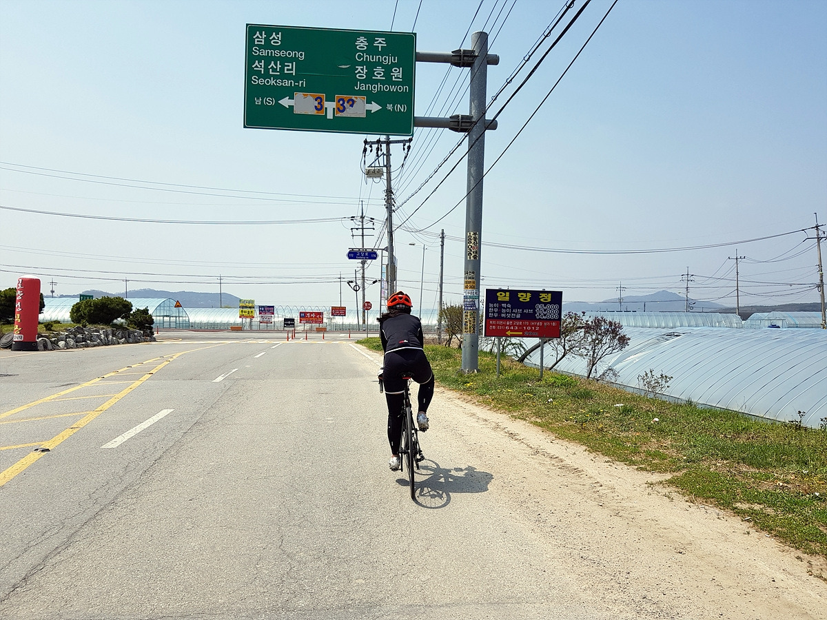길은 최대한 단순하게 가야 한다. 터미널 앞 중앙사거리에서 서쪽 방향으로 쭉 달리면 된다. 처음 경유지는 금왕인데 이정표를 따라서 거의 직진만 하면 된다.