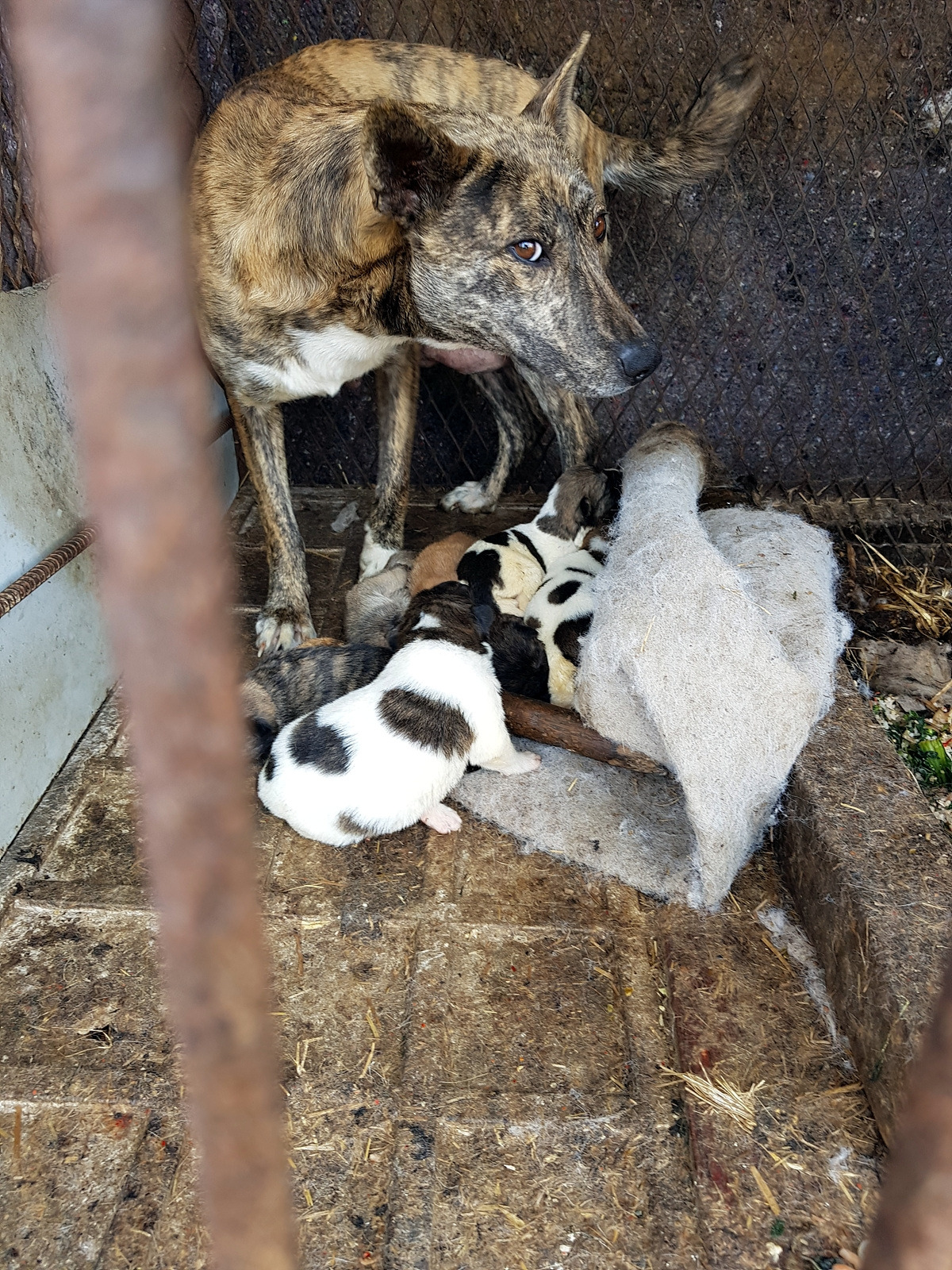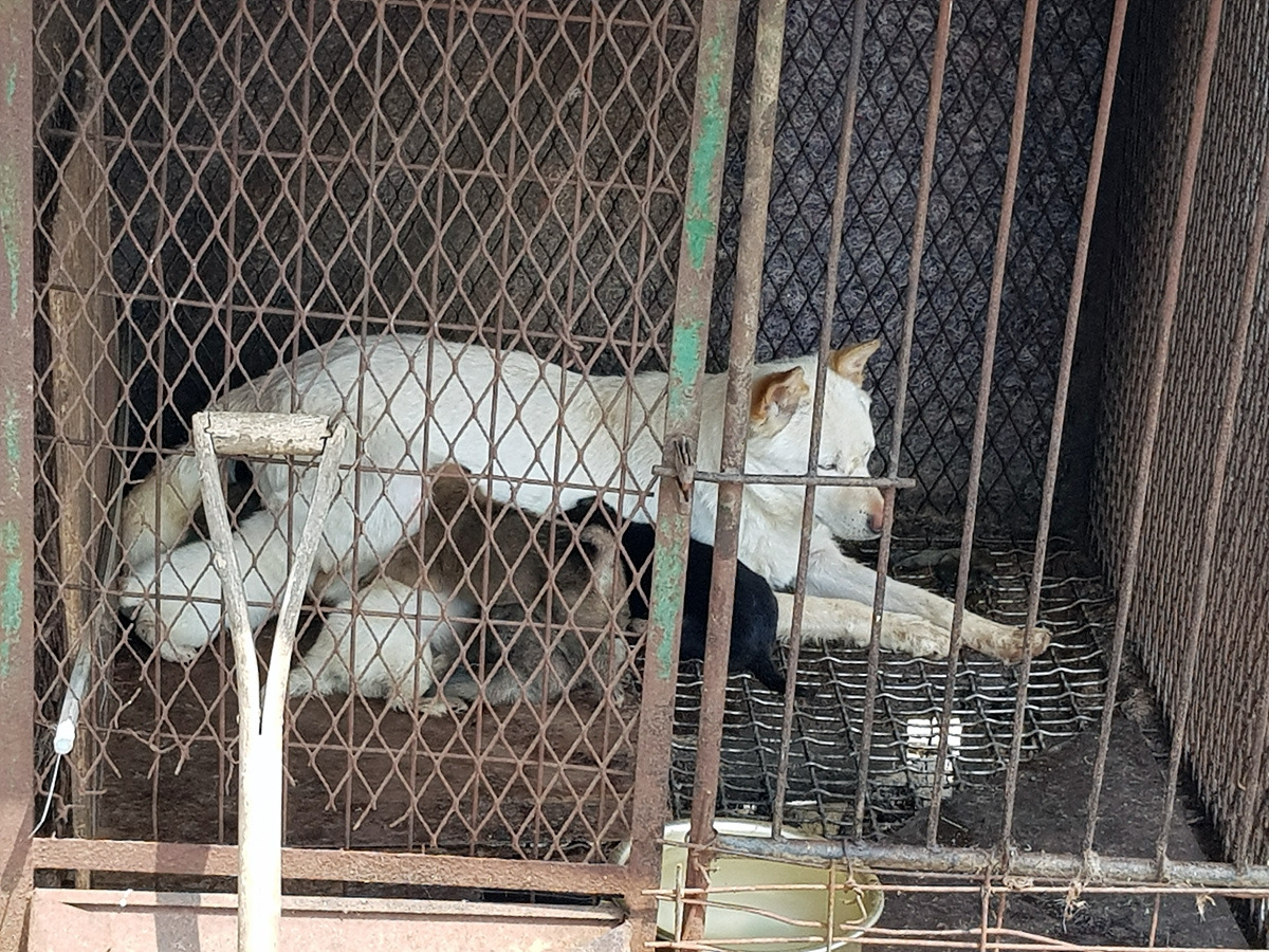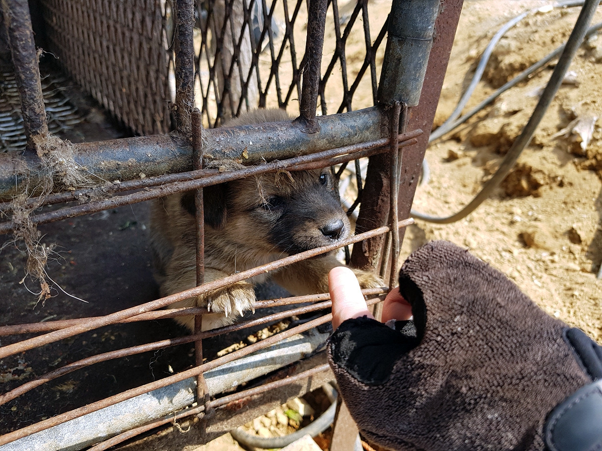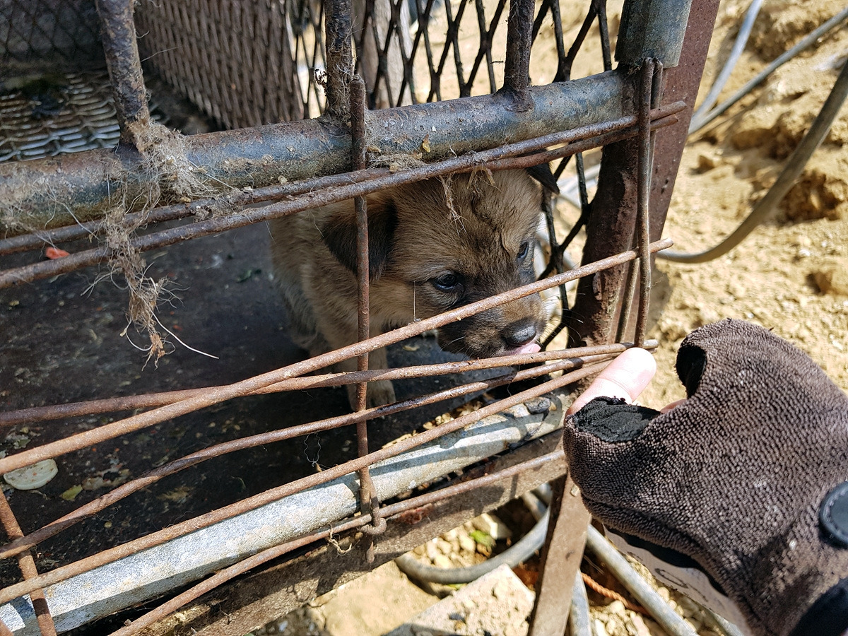 낯선 사람들이 다가오니 잔뜩 예민해진 어미개들에게 들개 대비용으로 조금 챙겨다니는 애견 간식을 주니 경계가 풀린다.