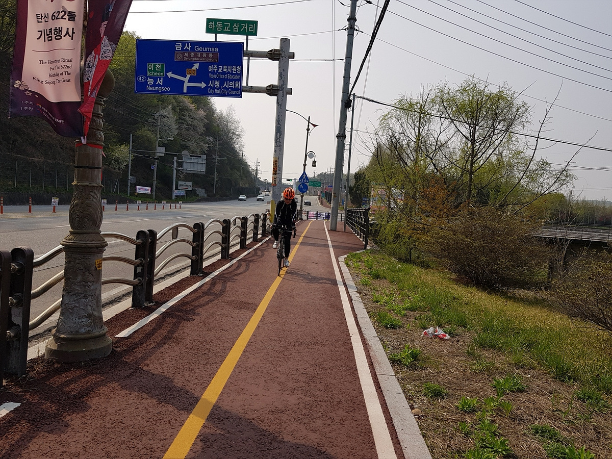여주보에서부터 여주 시내 입구까지 남한강 자전거길을 잠깐 타고 간다. 우리는 재미없는 사대강 자전거길을 그리 좋아하지 않아보니 꽤 오랜만에 온 것 같다.