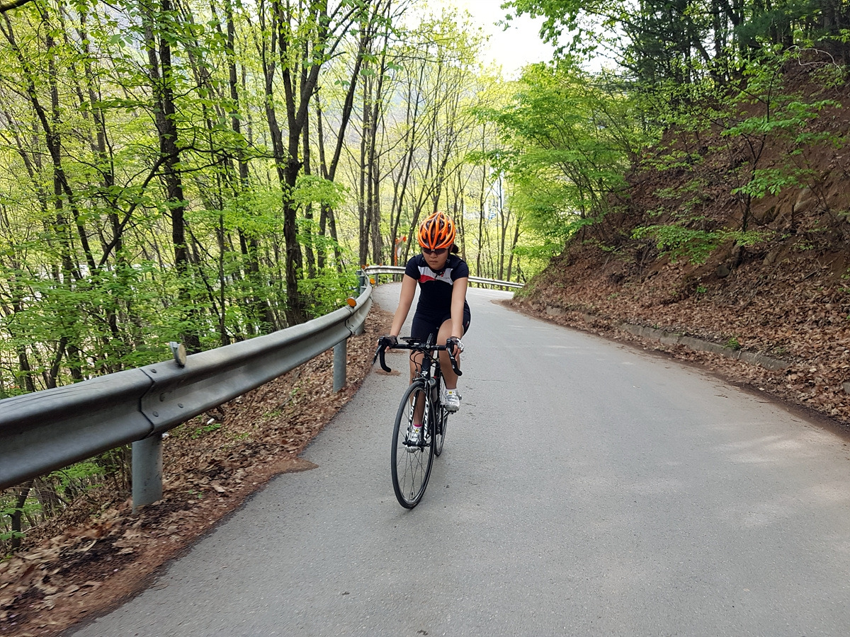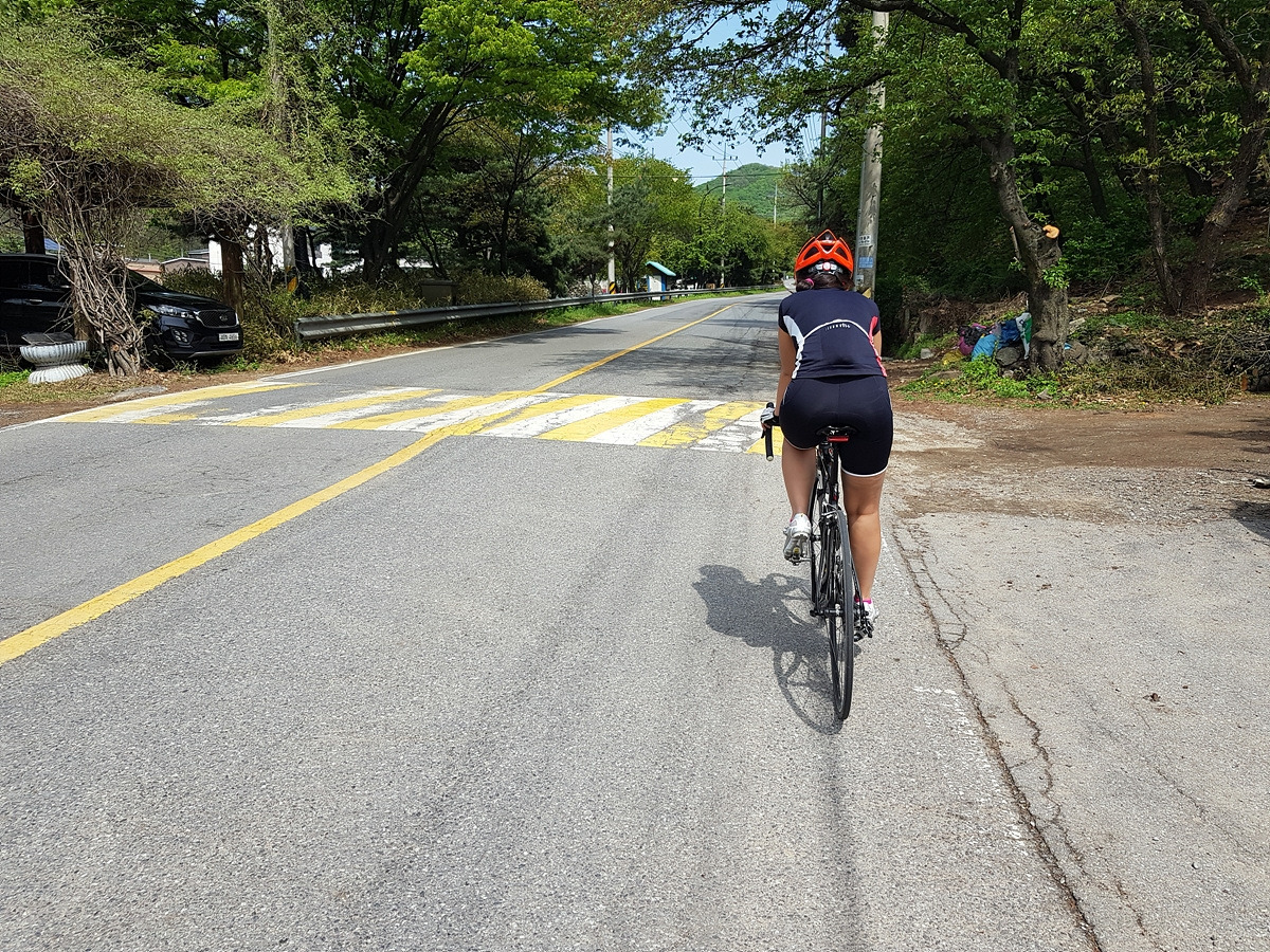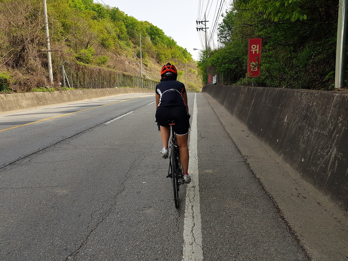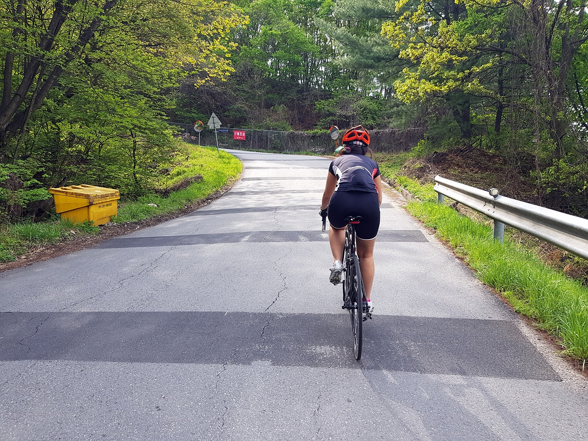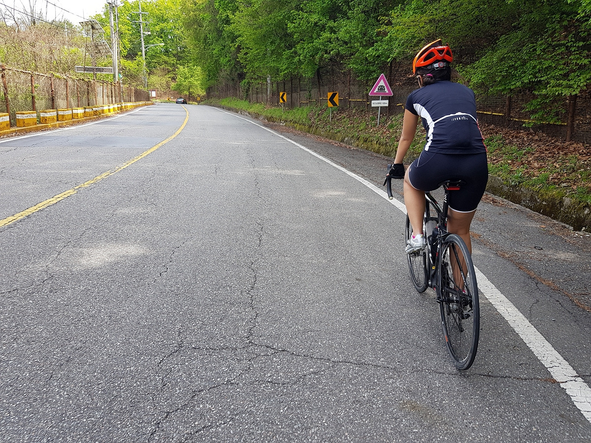 조금만 더 올라가서 경사가 완만해지면 정상에 거의 다 온 것이다. 오르막길 경험이 거의 없는 초보자들에겐 힘들 수도 있지만 그리 힘든 오르막길은 아니다.