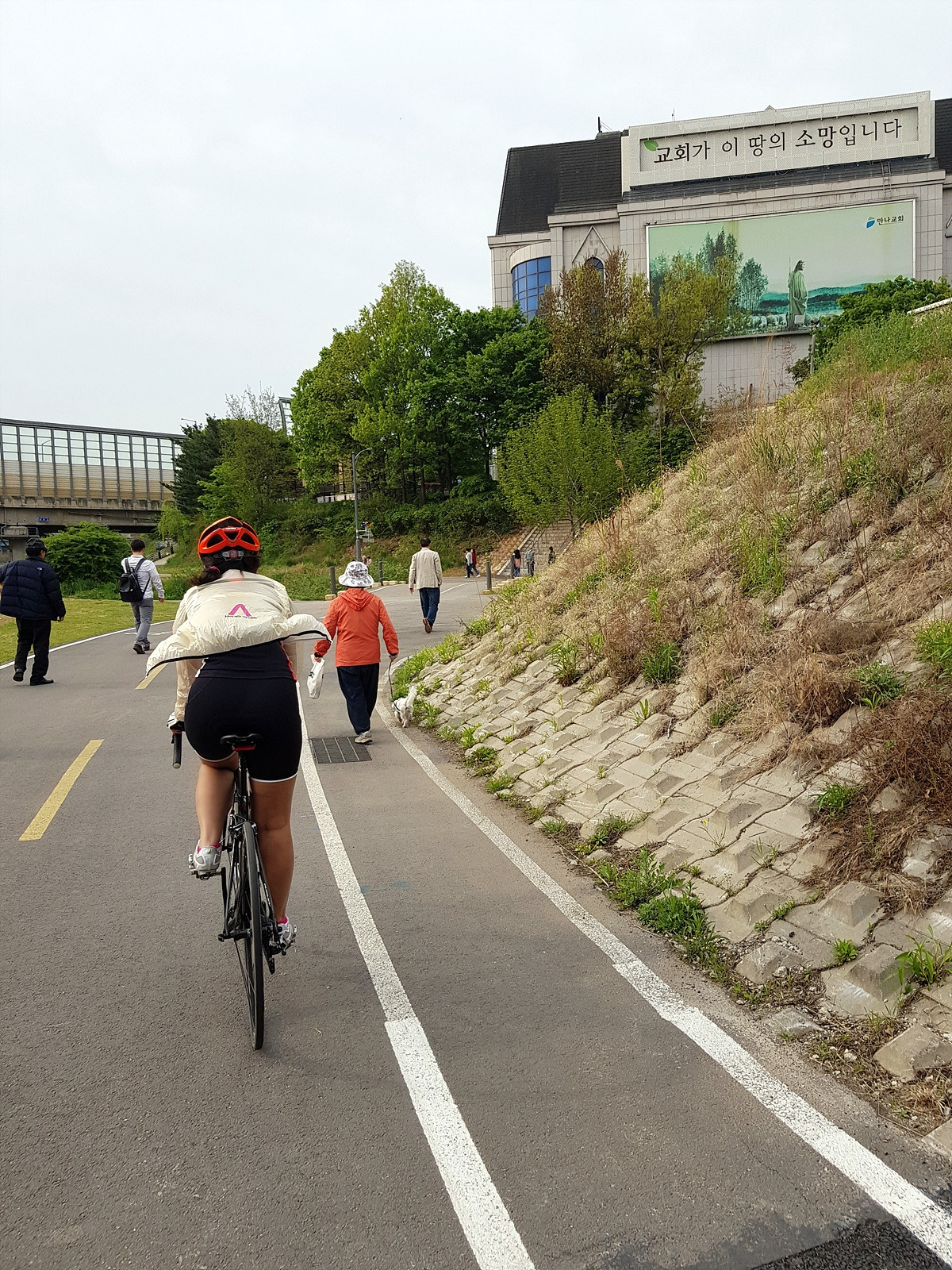 아까 지나갔던 만나교회 앞을 다시 지나간다. 서현에서 전철을 타거나 모란에서 전철을 타고 복귀할까도 생각했는데 자전거 도로로 이 정도 거리는 그냥 자전거로 가도 금방이다.