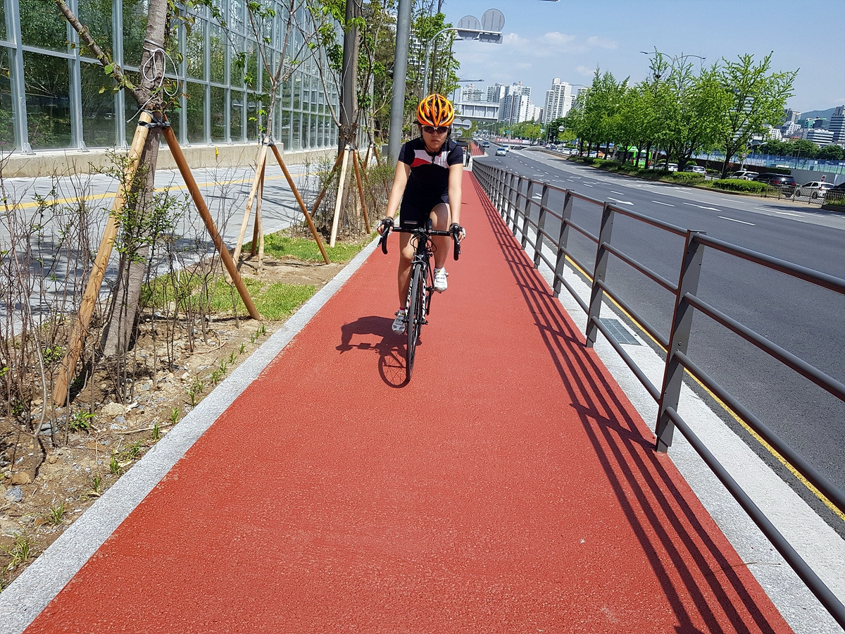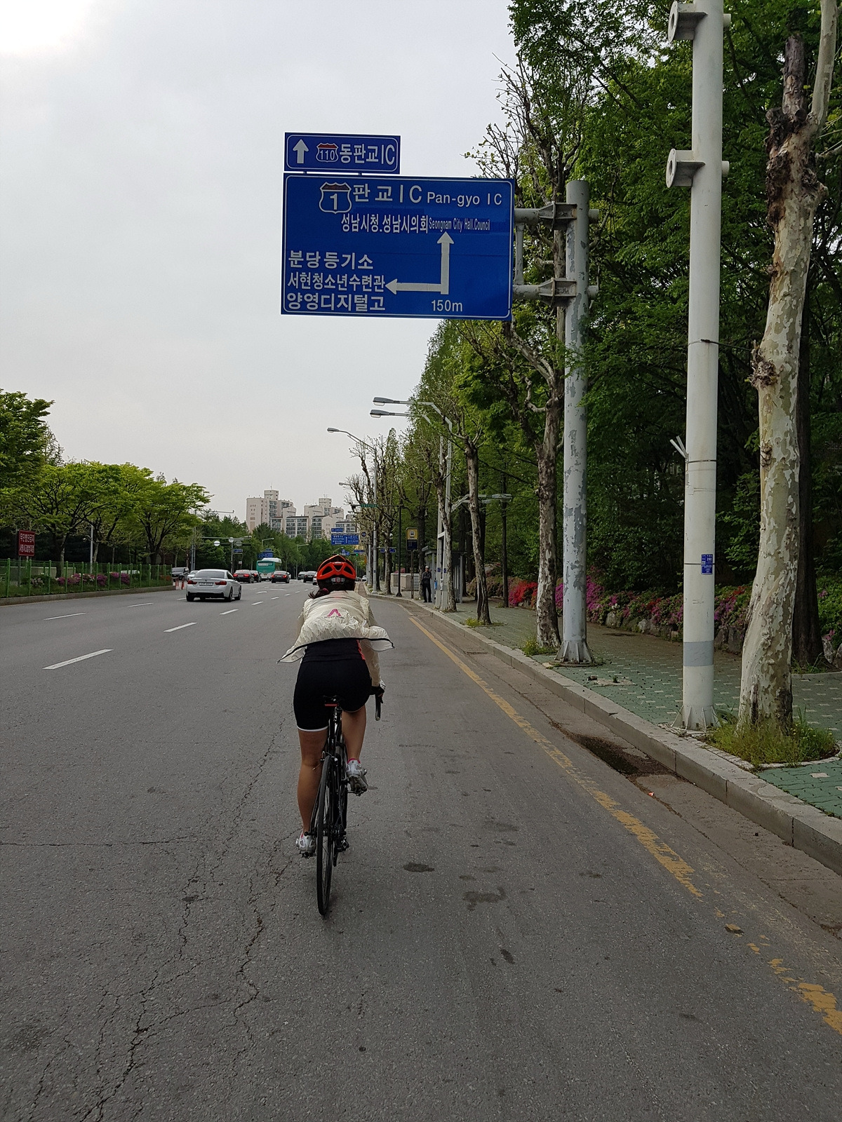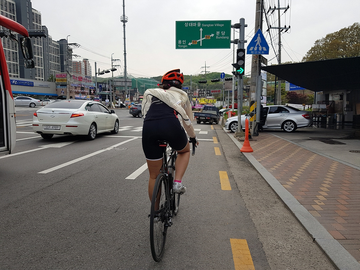 내리막길 끝의 율동공원에서 분당천 자전거 도로를 이용할 수도 있지만 오늘은 산책객들이 너무 많다. 도로를 따라서 그대로 서현을 지나 직진한다. 서현은 분당에서 광역 버스들이 드나드는 관문 같은 곳이라 교통량이 많다. 조심해서 탄천까지 달린다.