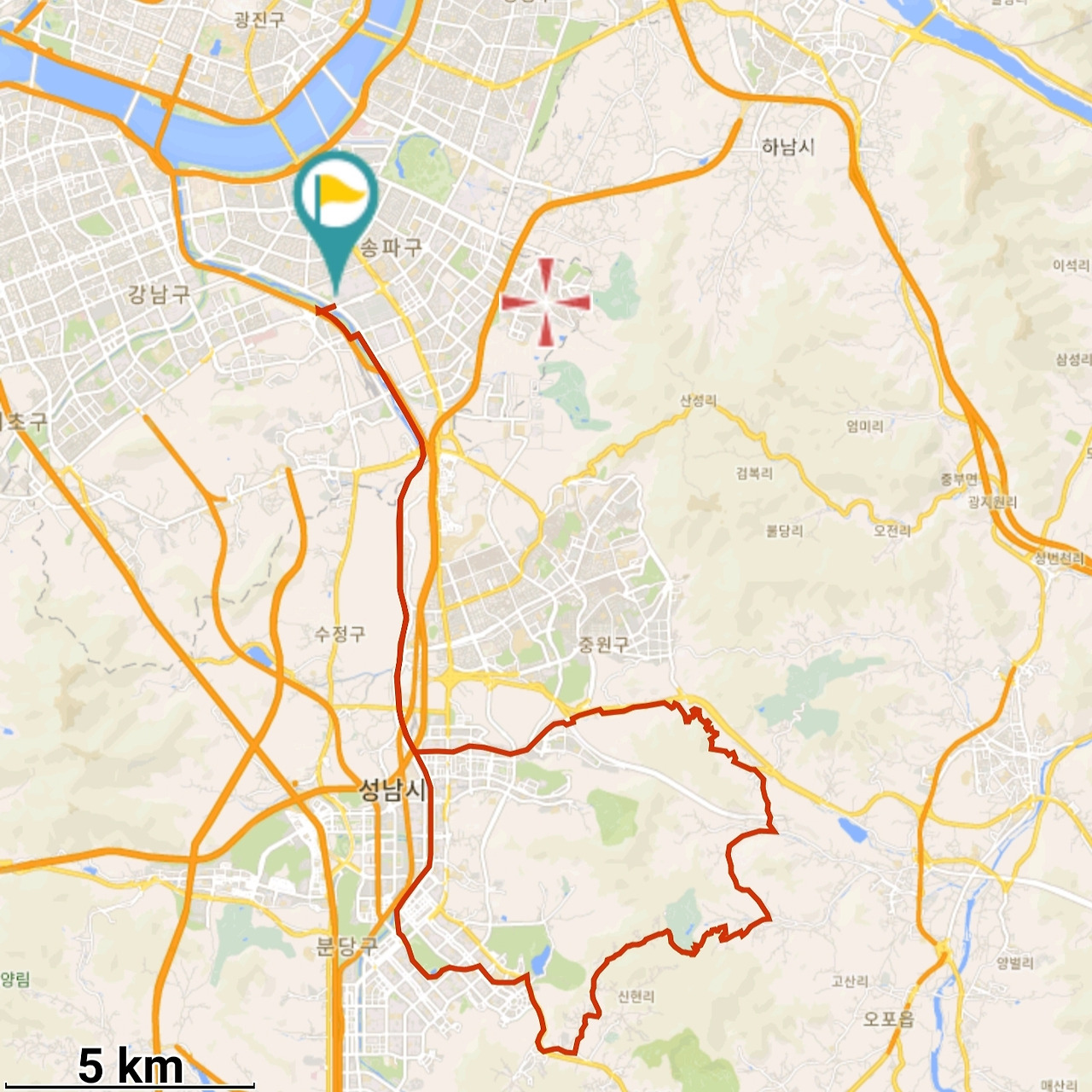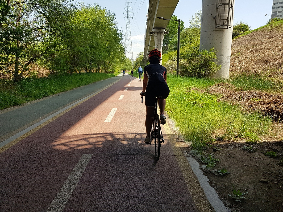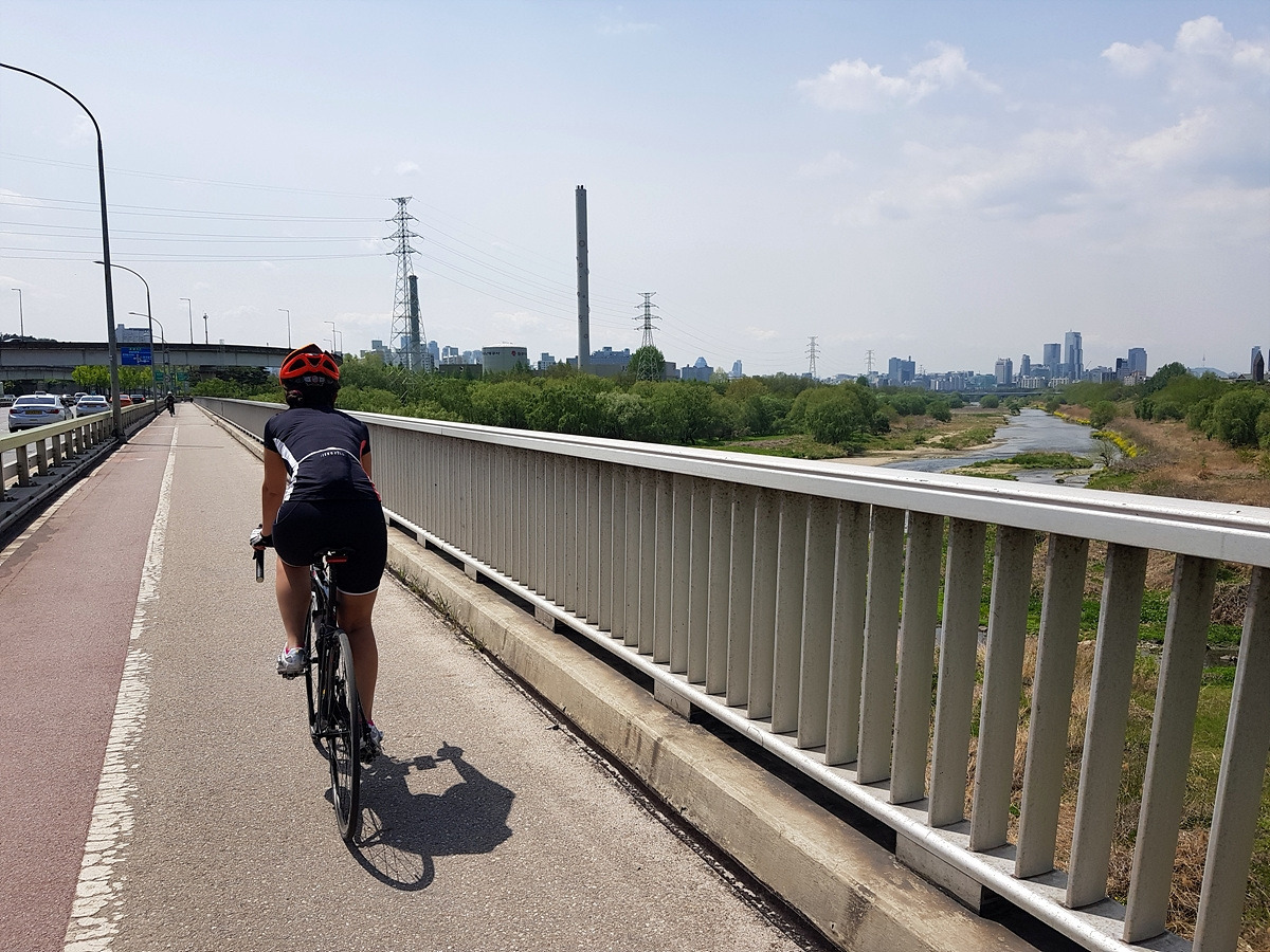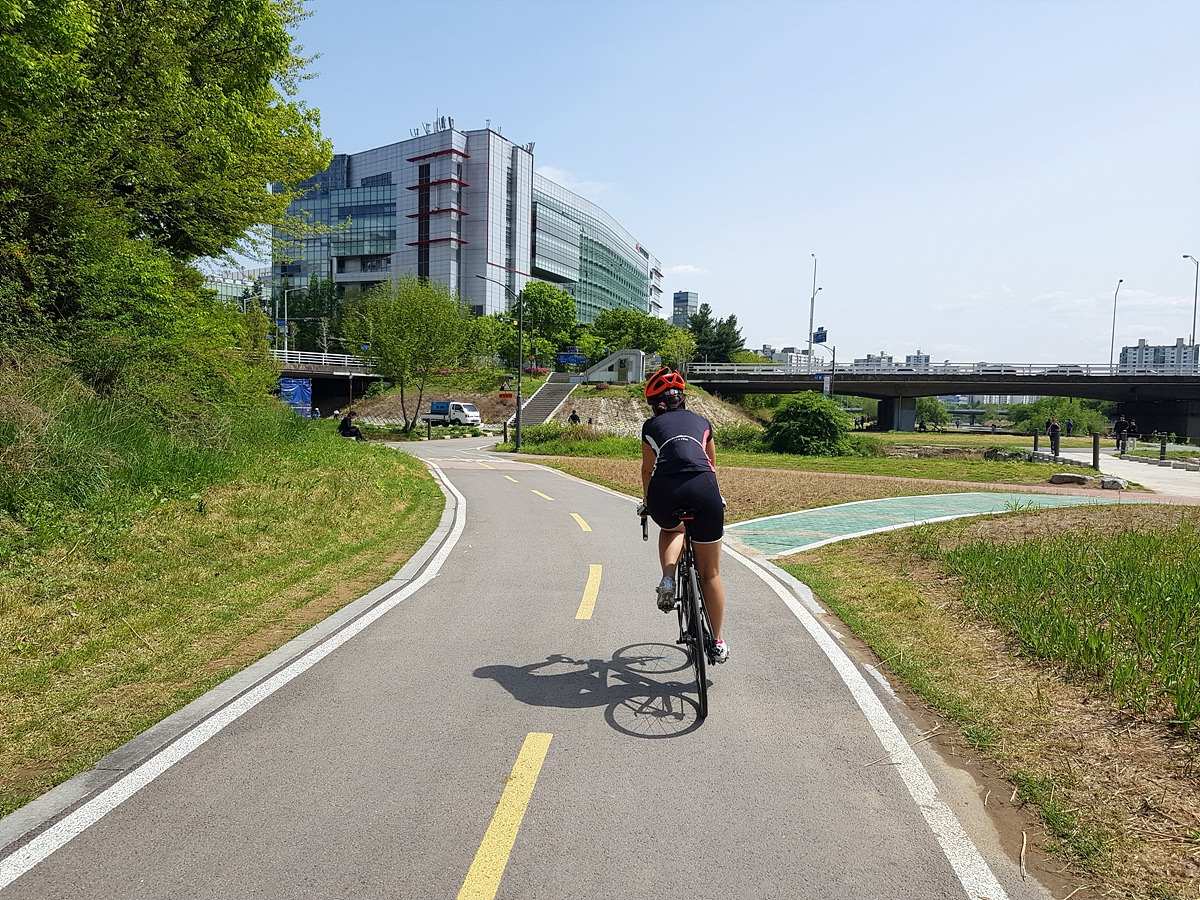 서울 공항 옆으로 계속 자전거길을 따라서 모란을 지나 야탑 입구까지 가야 한다. 등화관제 때문에 가로등이 거의 없는 구간이라 밤에는 조심해야 하는 곳이다.