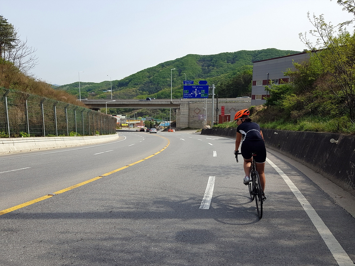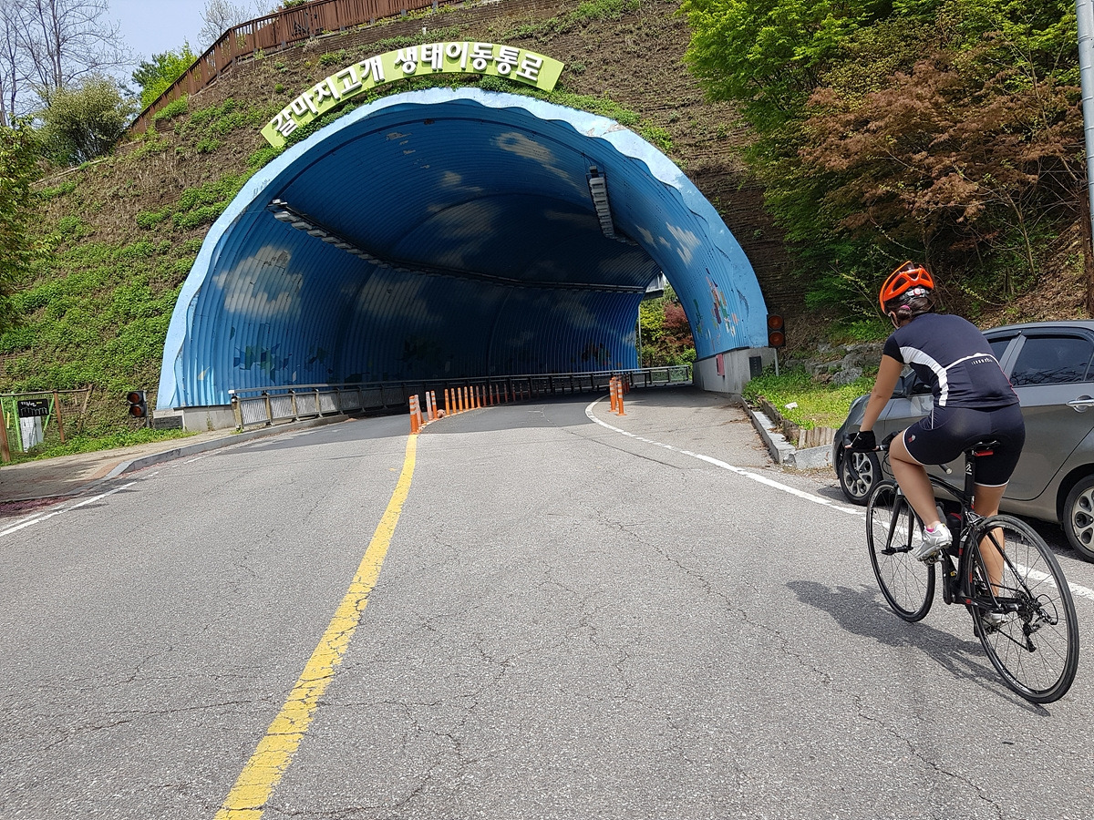 이제 도로를 따라 달린다. 갈마치 터널로 가는 큰길 옆으로 고개를 올라가는 길이 시작된다.
