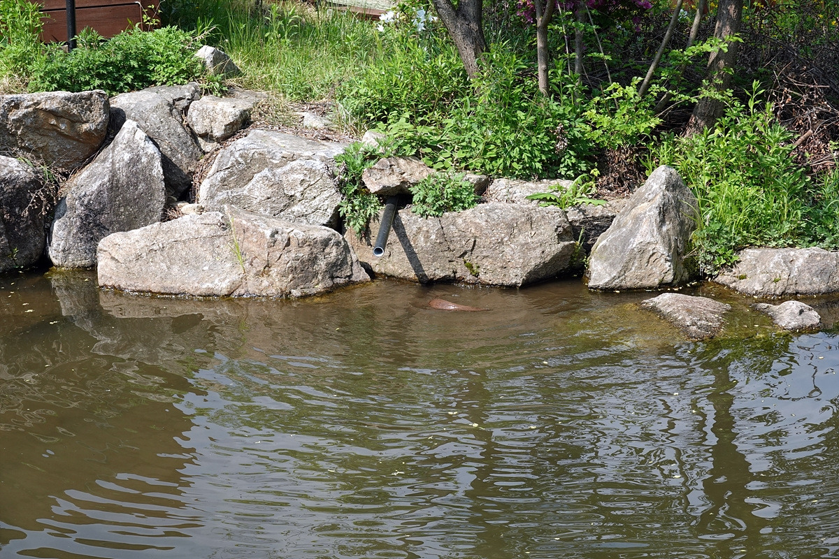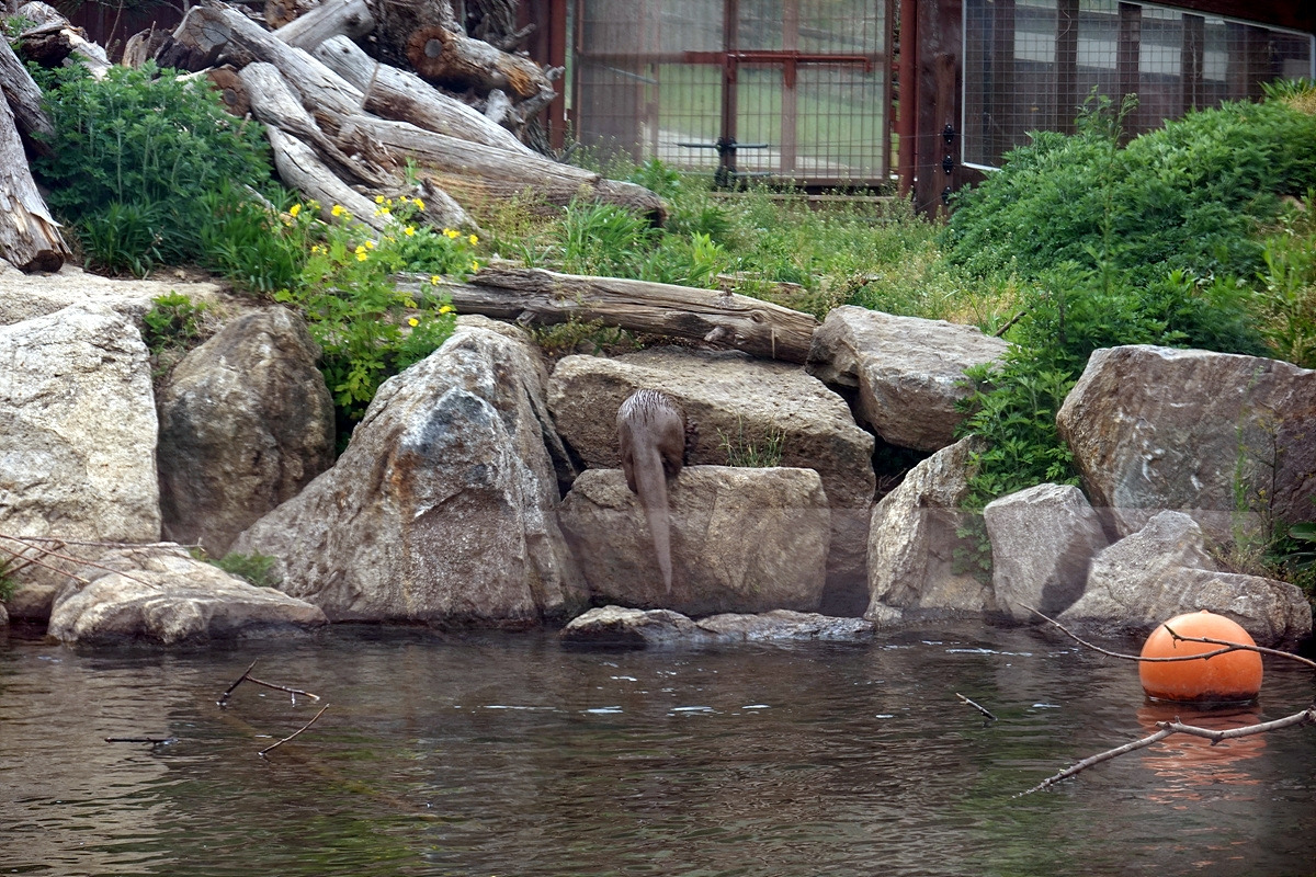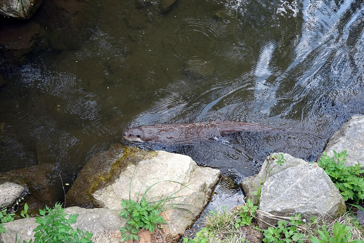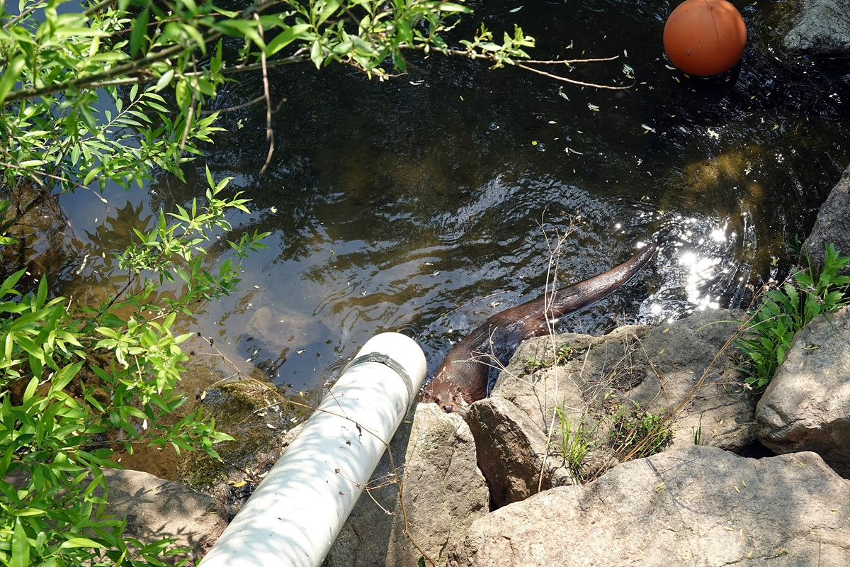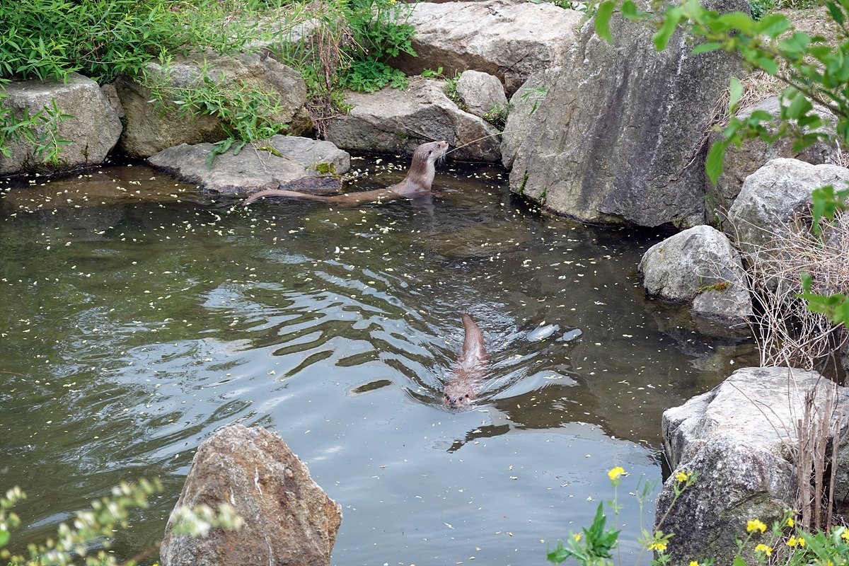 또 다른 사육장에도 수달이 나타났는데 유유히 수영을 즐기다가 다시 굴 속으로 들어가 버린다.