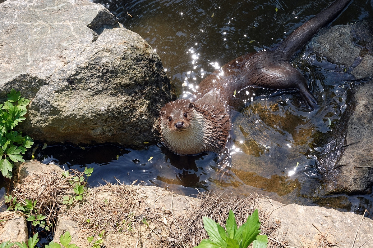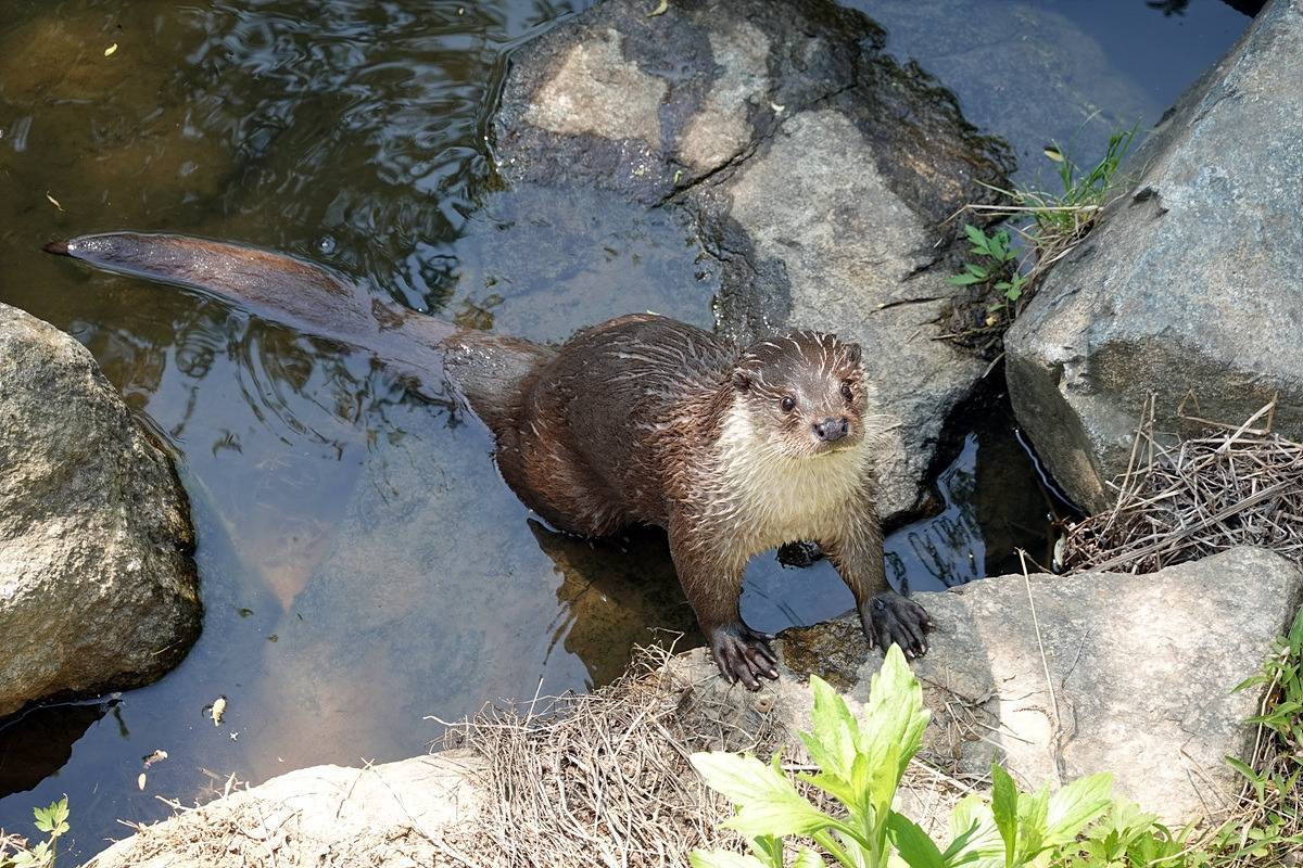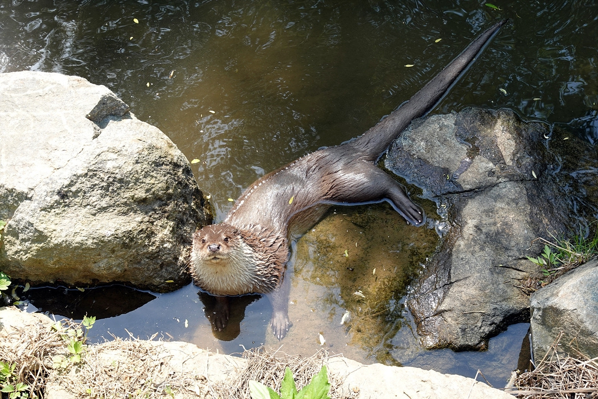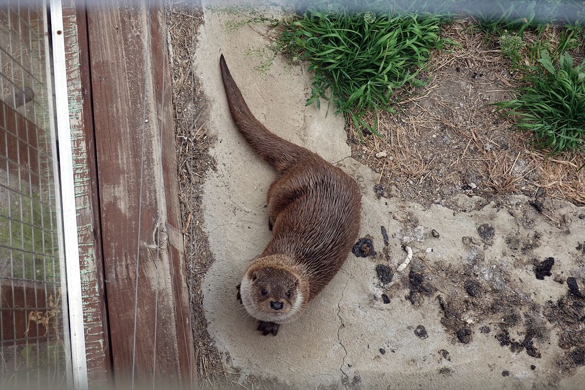 연구원 선생님이 이쪽에만 먹이를 주니 저쪽 사육장에서도 입질이 온다. 자기도 줄까 싶어서 두 발로 서서 이쪽을 자꾸 쳐다보는 녀석이 있다. 우리 같은 관람객에게 수달을 보여주기 위해서 일찍 먹이를 주는 것이고 원래는 수달의 활동 패턴에 맞춰서 아침 일찍이나 저녁 늦게 물고기를 준다고 한다.
