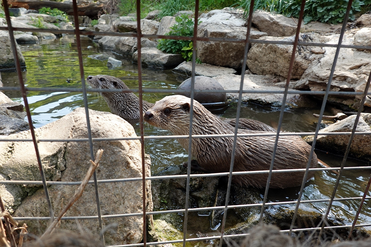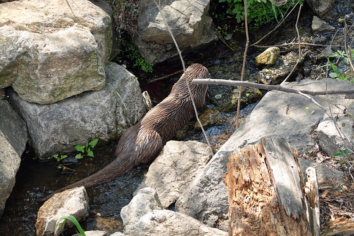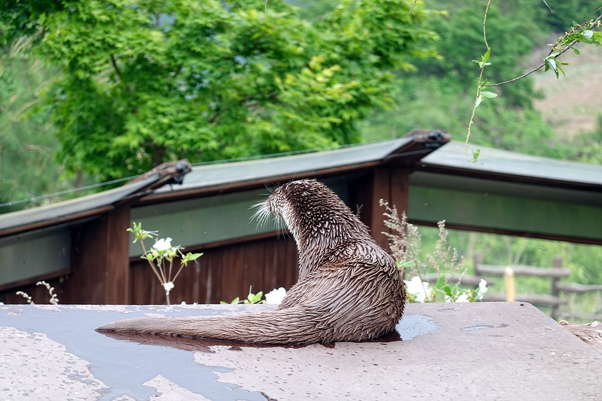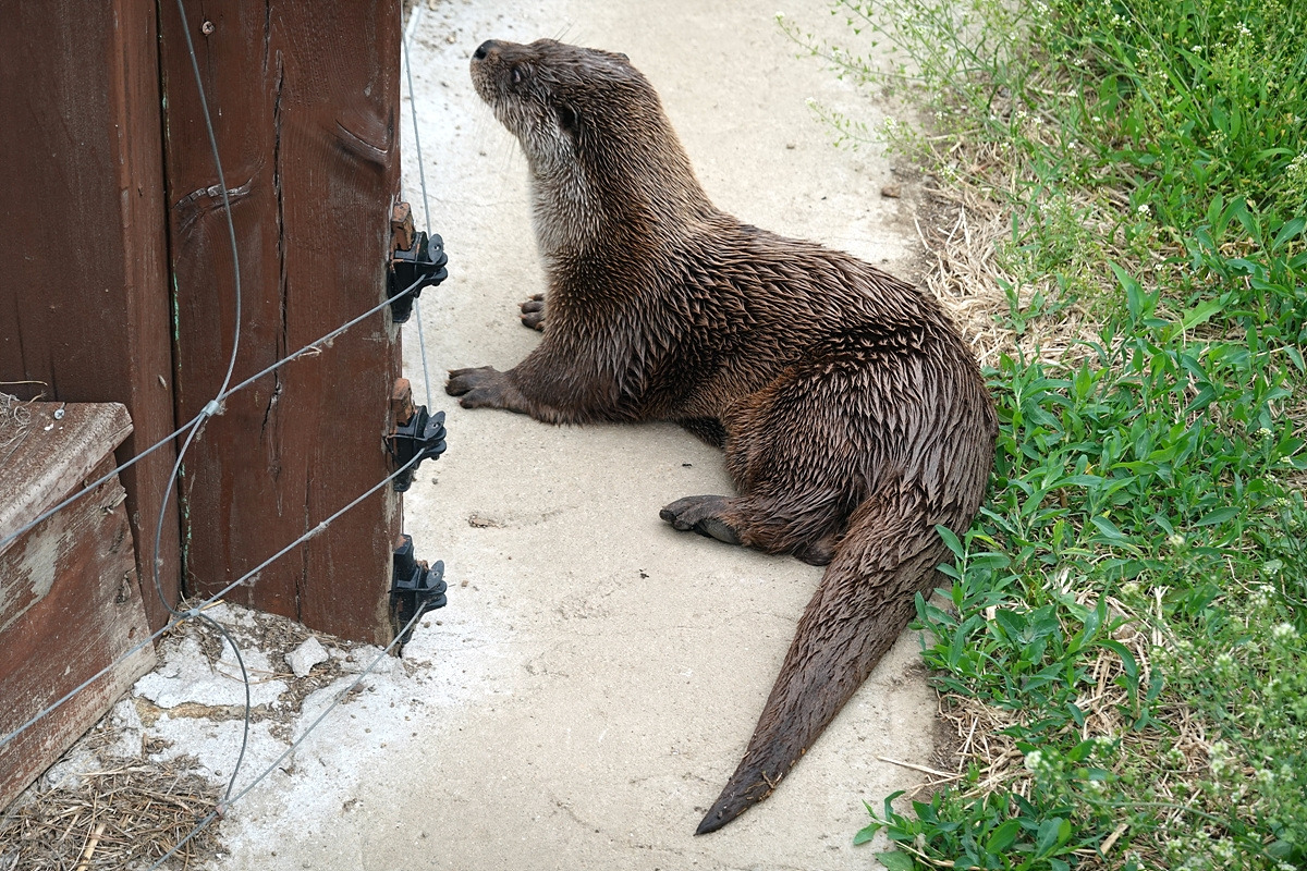 연구원 선생님이 이쪽에만 먹이를 주니 저쪽 사육장에서도 입질이 온다. 자기도 줄까 싶어서 두 발로 서서 이쪽을 자꾸 쳐다보는 녀석이 있다. 우리 같은 관람객에게 수달을 보여주기 위해서 일찍 먹이를 주는 것이고 원래는 수달의 활동 패턴에 맞춰서 아침 일찍이나 저녁 늦게 물고기를 준다고 한다.