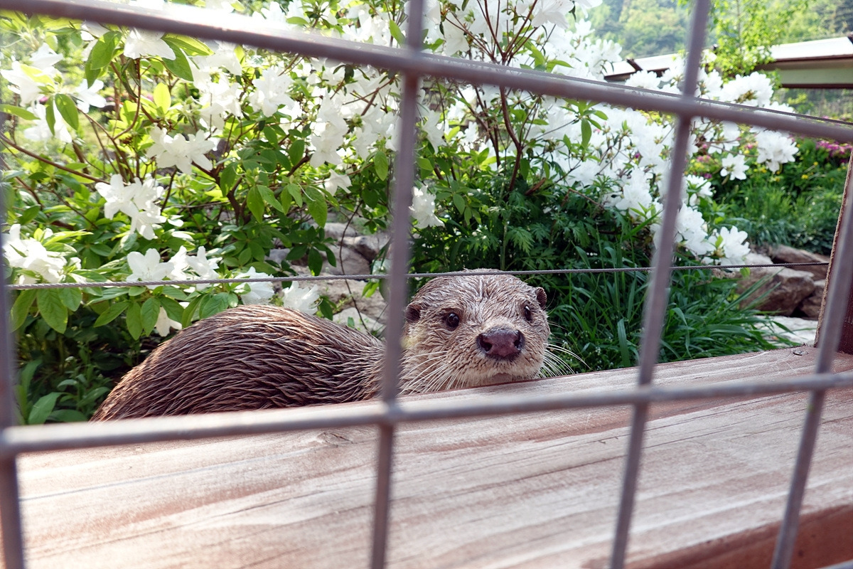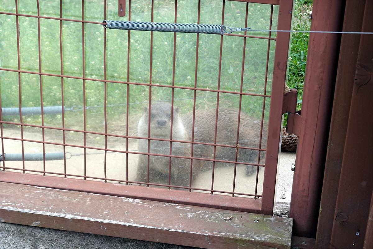 사람 손에서 자란 수달인 인국이다. 강원도 밭에서 흔히 볼 수 있는, 야생동물의 침입을 막기 위한 전기 펜스가 사육장 안에 쳐져 있는데 안에 있는 녀석이 탈출하는 것보다 근처 파로호에 사는 야생 수달들이 시비를 걸러 오기 때문에 설치되어 있는 것이라고 한다. 인국이도 사육장 탈출 경력이 있다는데, 사육장을 탈출해서 관람객들을 졸졸 쫓아다니다가 다시 잡혔다고 한다. 인국이처럼 사람에게 익숙한 수달이라도 이빨과 발톱이 매우 날카롭기 때문에 장난으로 물거나 할퀴는 것으로도 사람은 크게 다칠 수 있다고 한다.