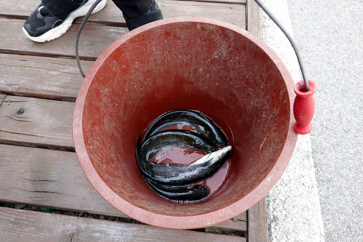 오늘 수달의 식사는 살아있는 싱싱한 메기다. 오메... 이 비싼걸... 그래서, 연구원 식대보다 수달 식대가 훨씬 더 많이 든다고 한다.